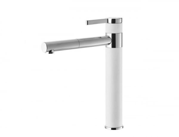 Descriere baterie pentru chiuveta de bucatarie alb mat crom lucios Alveus Zina Colectie: Zina; Cartus ceramic; Pipa pivotanta; Instalare pentru o singura gaura; Montare: pe chiuveta; Monocomanda; Racorduri flexibile de conectare la apa; Maner…