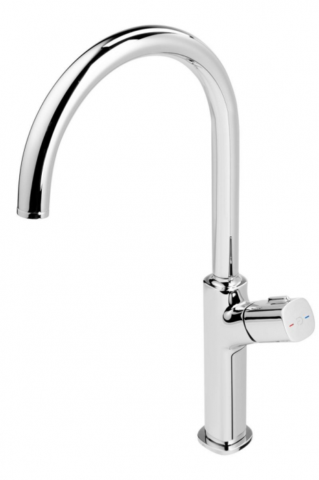 Descriere baterie chiuveta bucatarie FDesign Meandro, monocomanda, crom lucios culoare: crom lucios material: alama sanitara montare: pe chiuveta maner metalic tip joystick clasa de debit: Z clasa de zgomot: I cartus ceramic pipa pivotanta…