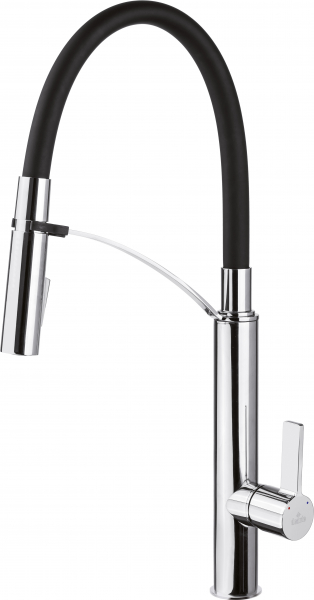 Baterie chiuveta bucatarie negru mat crom lucios cu dus extractabil Deante Gerbera