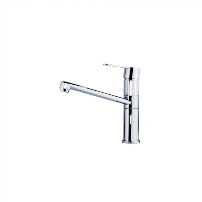 Descriere baterie pentru chiuveta de bucatarie crom lucios Alveus Zenit Colectie: Zenit; Cartus ceramic; Pipa pivotanta; Material: alama; Montare: pe blat, pe chiuveta; Racorduri flexibile de conectare la apa; Instalare pentru o singura gaura;…