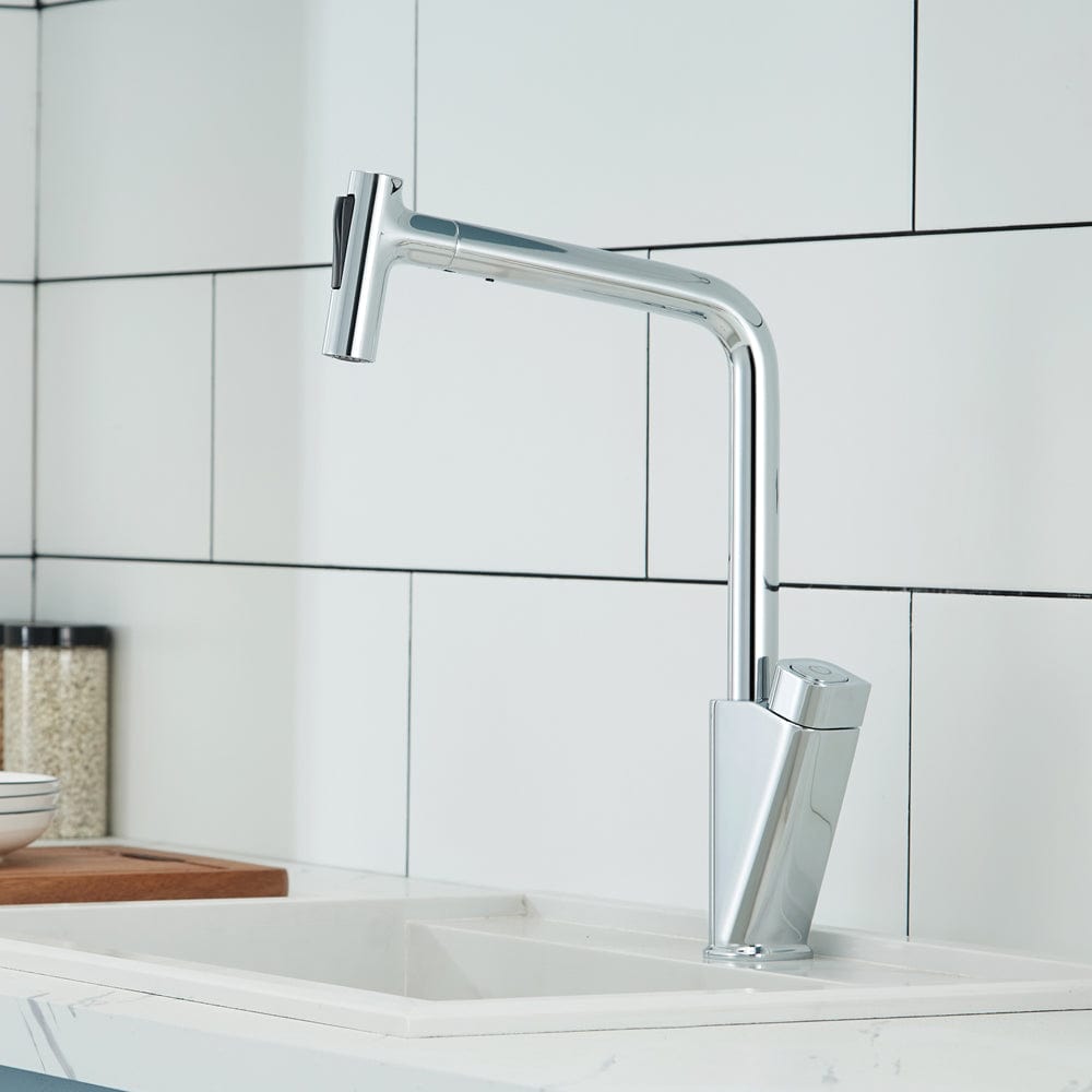 Baterie profesionala cu dus extractibil, 2 tipuri de curgere, argintiu cromat, cod 1727