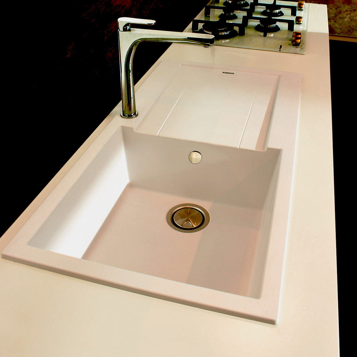 Chiuveta bucatarie granit Alba Galbui / Jasmine reversibila stanga/dreapta cu picurator + accesorii montaj, 780x500x200 mm, cod 6055