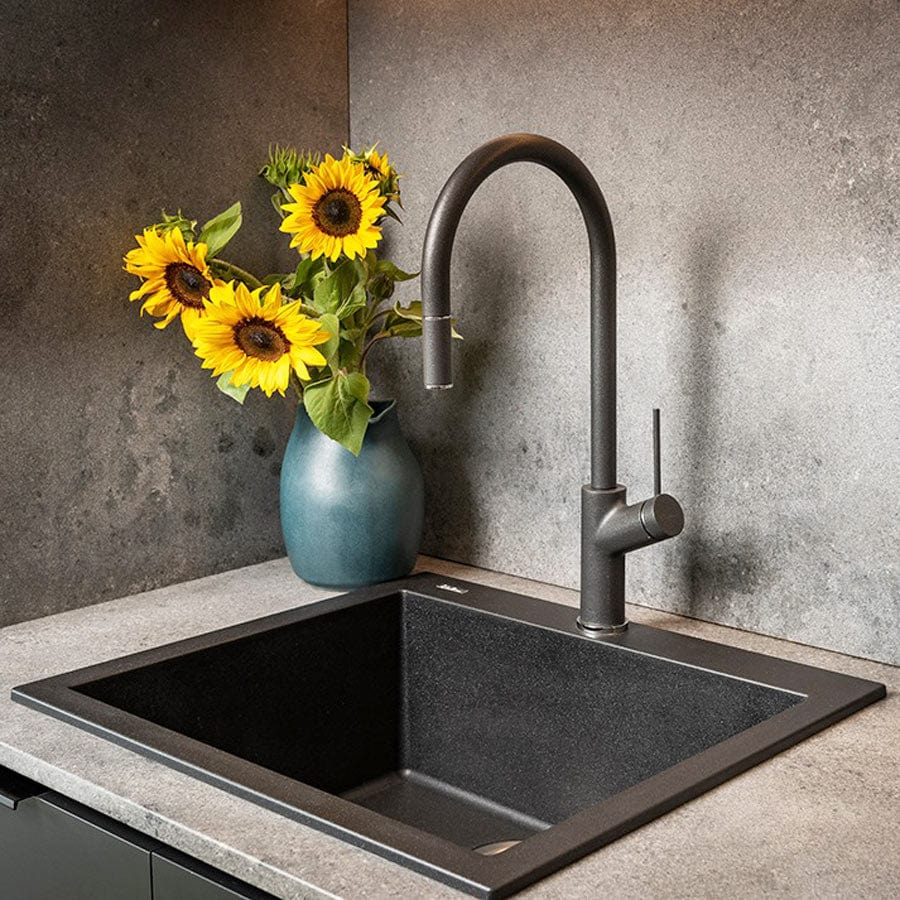 Chiuveta bucatarie granit Neagra / Black Metal quartz + accesorii montaj, 560x500x200 mm, cod: 6003