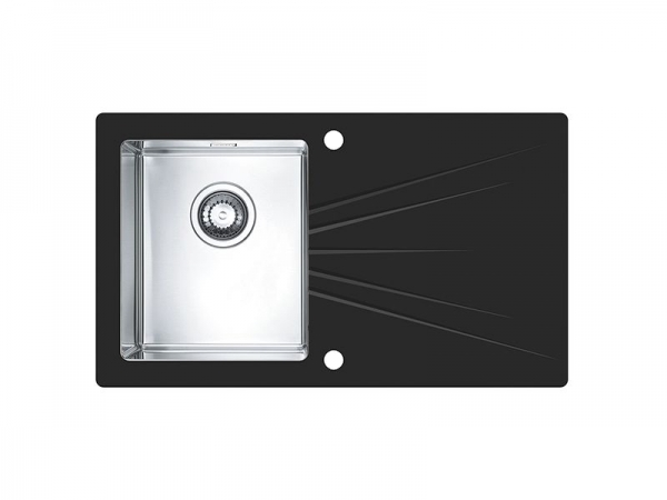 Chiuveta bucatarie inox satinat cu sticla securizata neagra, cuva stanga, Alveus Karat 10