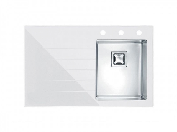 Chiuveta bucatarie inox si sticla alba, cuva dreapta, Alveus Crystalix 10