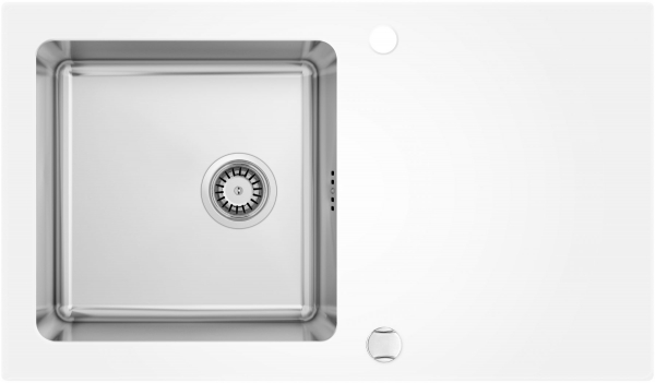 Chiuveta bucatarie inox si sticla cu picurator alba Deante Pallas 0W2C
