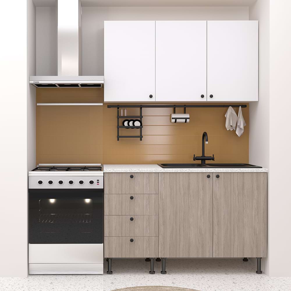 <p>DOMINO – sistem modular de bucatarie</p><p>Mobila de bucatarie DOMINO A135 cm, cu carcasa din PAL Vizon, fronturi combinate din PAL Oak si PAL Alb, blat termic este fabricata de TAMOS .</p><p>Bucatarie configurabila! </p><ul><li>configurezi materialele, decor fronturi, decor blat</li><li>configurezi manere</li><li>configurezi accesorii</li><li>configurezi dimensiune </li></ul><p><span style="color: rgb(227, 108, 9);">NOTA</span>: In cazul in care se configureaza bucataria din mai multe corpuri individuale ce fac parte din </p><p> Colectia DOMINO, se poate opta pentru blat , plinta , inaltator blat pe toata lungimea compozitiei, </p><p> in limitele constructive ale materialelor sau ale capacitatii de transport.</p><p>Mobilier kit, se livreaza demontat, ambalat in cutii de carton</p><p> Materiale:</p><ul><li>Carcasa corpuri – PAL melaminat Vizon 16mm</li><li>Fronturi – PAL melaminat Oak 16mm, Alb 16mm</li><li>Spate – PFL melaminat 2,5mm</li><li>Balamale Hafele Metallamat cu amortizare – Germania</li><li>Picioare reglabile PVC H15cm cu sistem de prindere plinta Hafele – Germania </li><li>Sistem de conectori Hafele – Germania</li><li>Butoni sau manere conform configurator ( butoni negri sau crom – varianta de baza)</li><li>Blat termic 2,8cm grosime Tehnotop (varianta baza) si 3,8cm grosime (varianta optionala)</li><li>Cant ABS 0,4mm – carcasa</li><li>Cant ABS 1mm – fronturi</li></ul><ul><li>Lungime – 135cm</li><li>Adancime carcasa 50cm</li><li>Adancime blat 60cm</li><li>Inaltime corpuri inferioare (inclusiv picioarele reglabile de H15cm) – 88-90cm </li><li>Inaltime corpuri superioare – 70cm </li></ul><p><span style="font-size: small; font-family: arial, helvetica, sans-serif;"></span></p><p>Blaturile de lucru Tehnotop sunt confecționate din plăci de PAL ale căror suprafețe sunt acoperite cu laminat prin presare și termoformare. Blaturile sunt optionale si sunt contra cost. </p><p>Sunt recomandate pentru întrebuințări multiple, atât în bucătărie cat și în alte zone, pentru amenajări care implică suprafețe cu proprietăți specifice de rezistență și durabilitate.</p><ul><li>Postforming – profil tip “U” întărit cu MDF pentru rezistență la impact</li><li>hârtie balans rezistentă sporită la umiditate</li><li>antistrop cu adeziv poliuretanic topit pentru sigilarea îmbinării</li><li>rezistență mare la abraziune și durabilitate</li></ul><p>Garantie 24 luni</p><ul><li>Transport GRATUIT in toata tara. Produsele se preiau de la masina.</li></ul><p><span style="color: rgb(31, 73, 125);">*Chiuveta, bateria,blatul, panoul de peretele precum si celelalte accesorii din imagine nu sunt incluse in pret.</span></p>