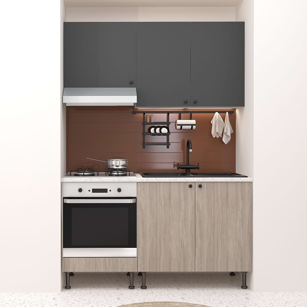 Mobila bucatarie DOMINO A150, Oak, Antracit