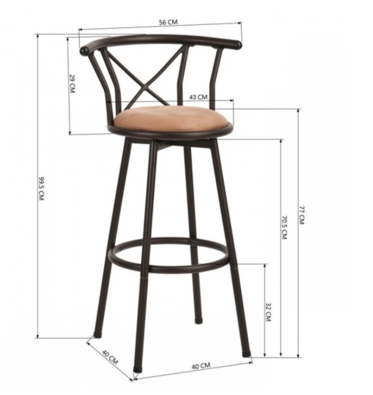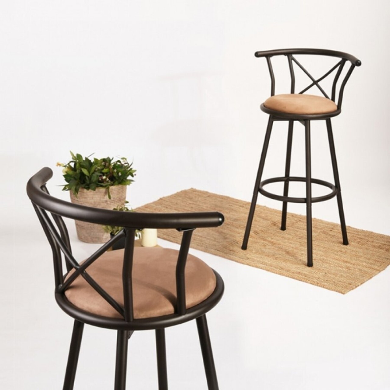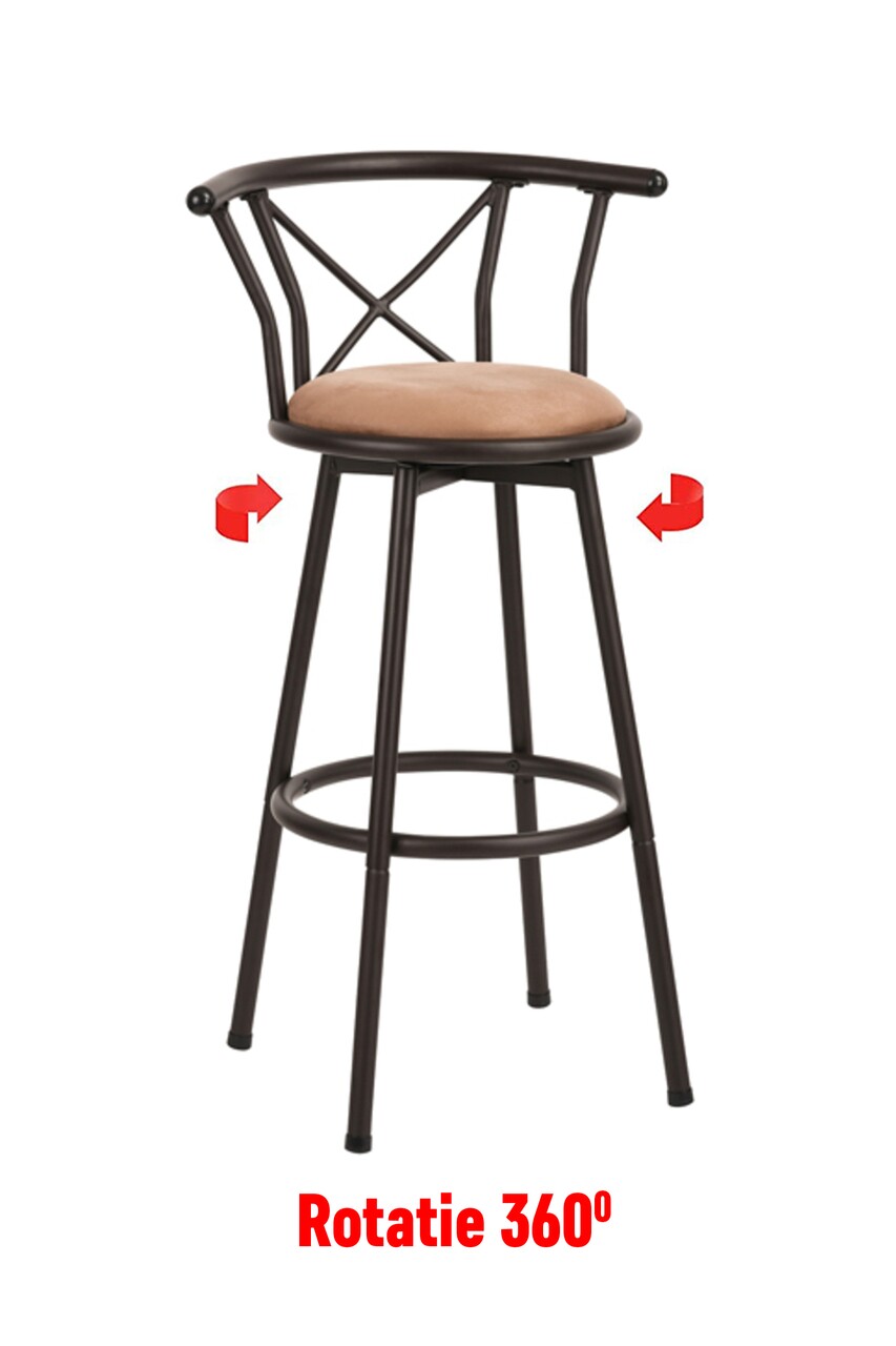 Scaun de bar Bedora Iron, 43 x 56 x 99 cm, metal/textil, maro