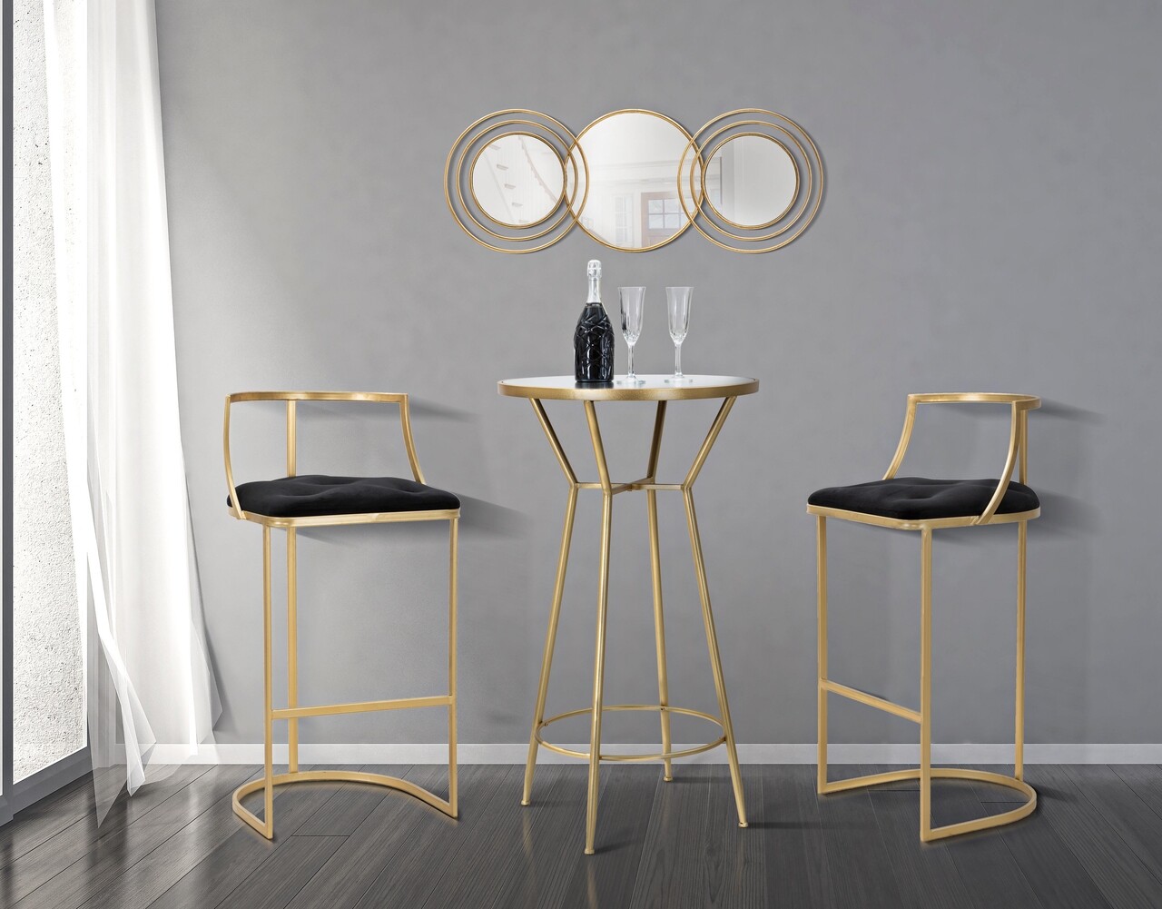 Scaun de bar Istanbul, Mauro Ferretti, Ø 45×90 cm, fier/catifea, auriu/negru