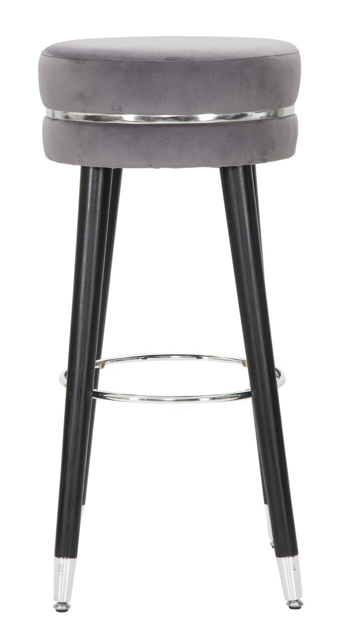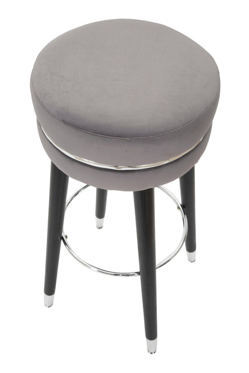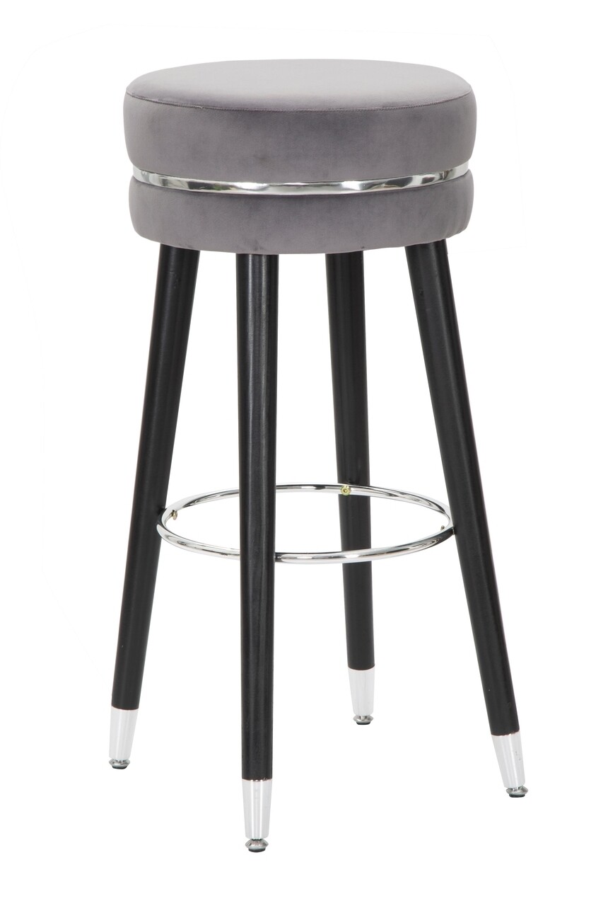 Scaun de bar Paris, Mauro Ferretti, Ø35×74 cm, lemn de pin/catifea, gri/argintiu