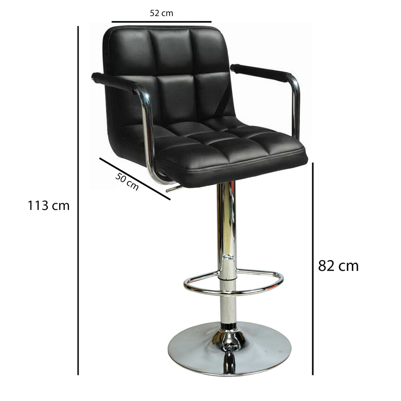 <p>Latime: 52 cm <br/>Inaltime: 113 cm <br/>Adancime: 50 cm<br/><br/>Inaltime sezut: 82 cm<br/><br/>Picioare metalice<br/><br/>Înălțime reglabilă a scaunului<br/></p>