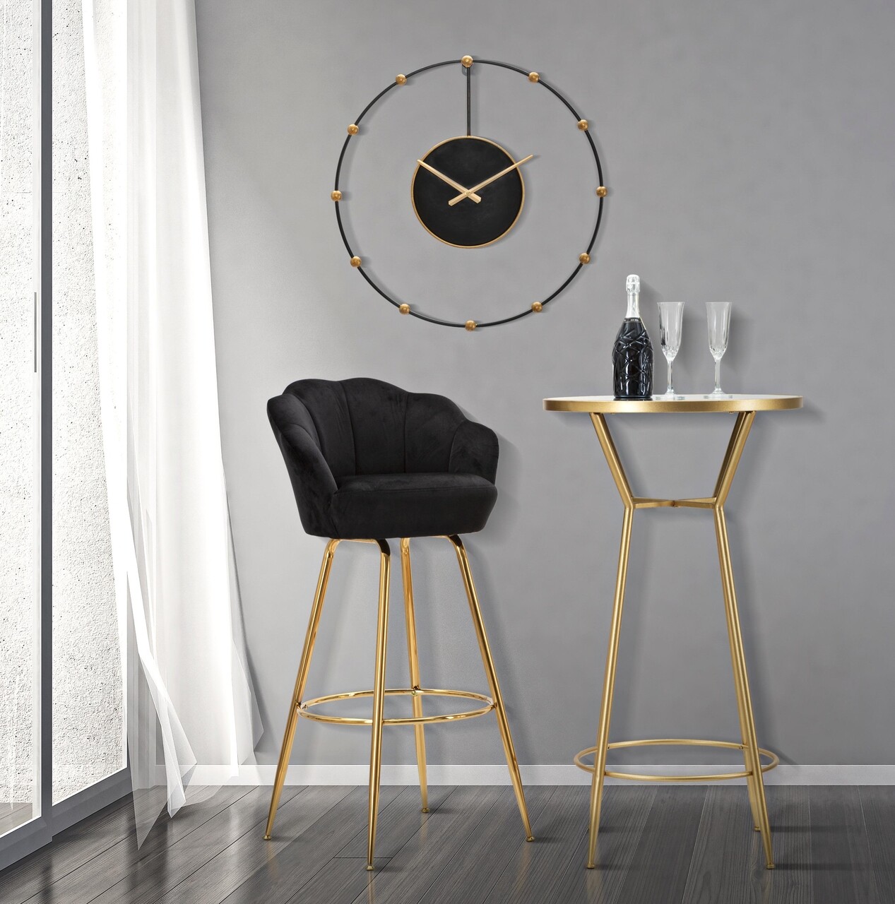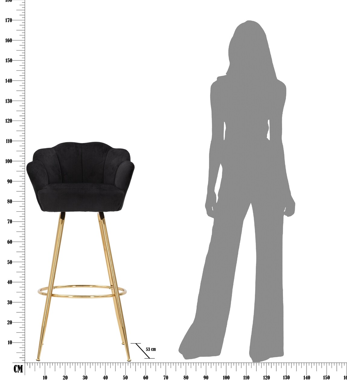 Scaun de bar Vienna, Mauro Ferretti, 55x55x110 cm, catifea, negru