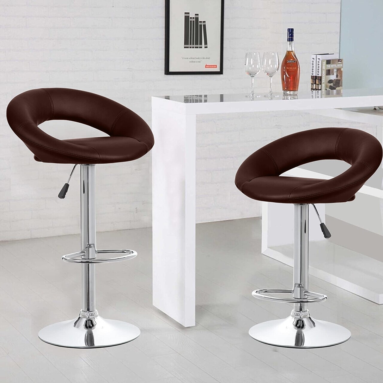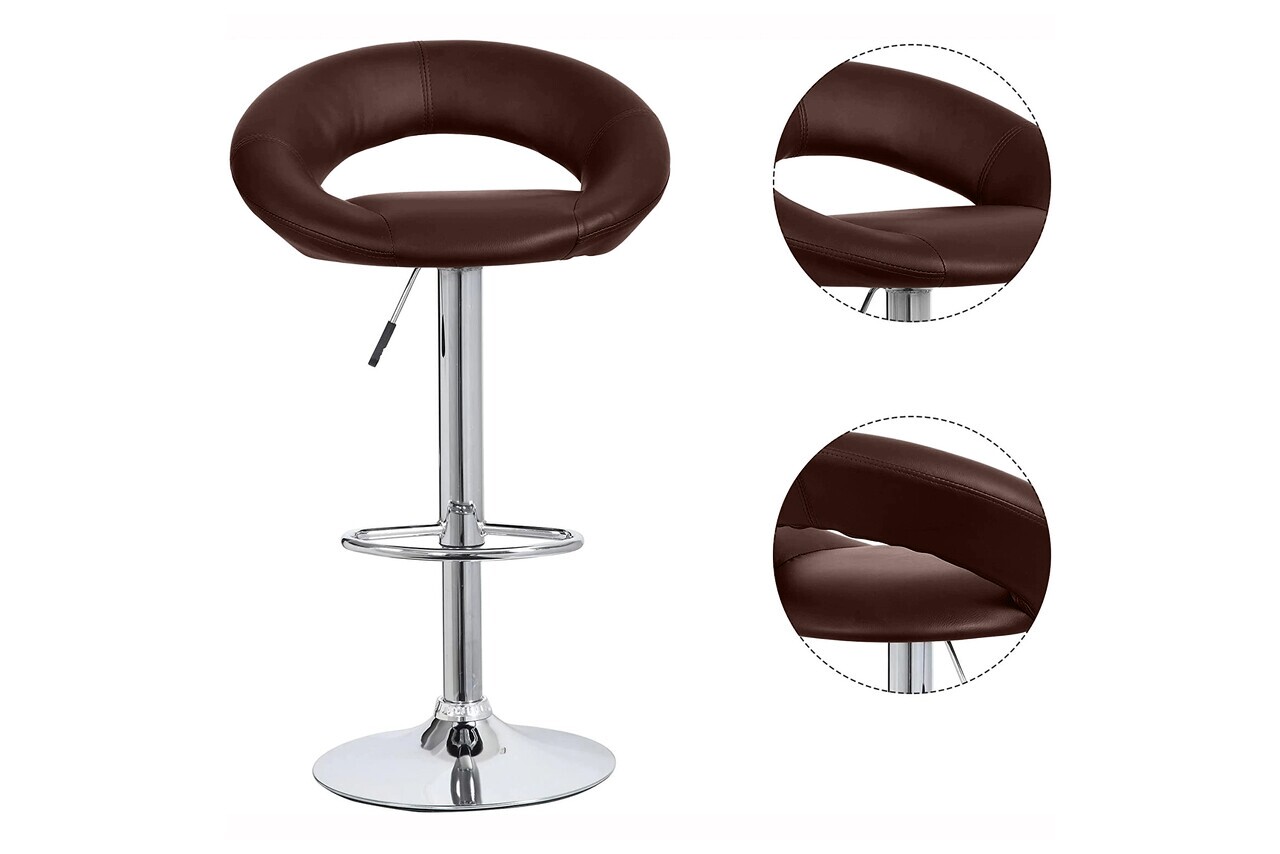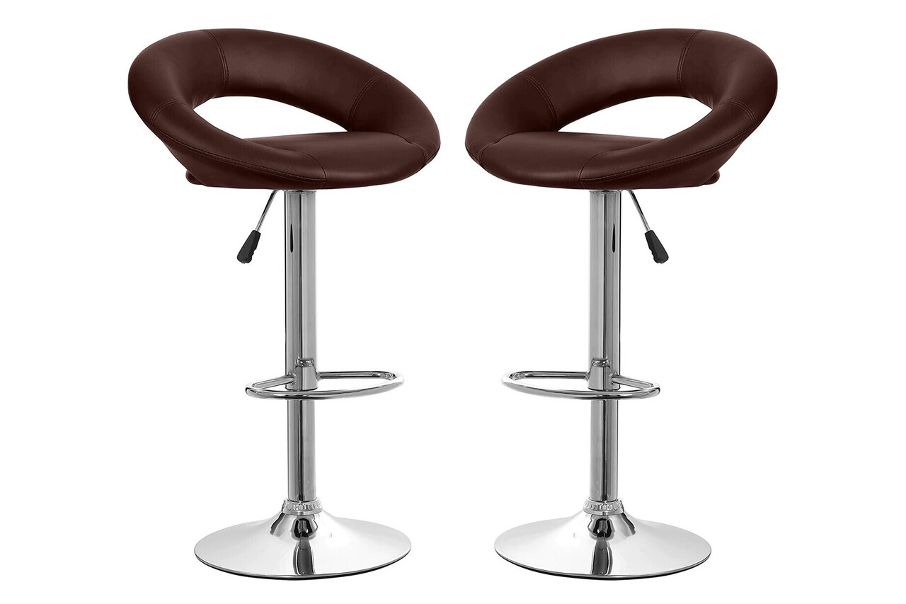 Set 2 scaune bar, Bedora Oval, piele ecologica, maro