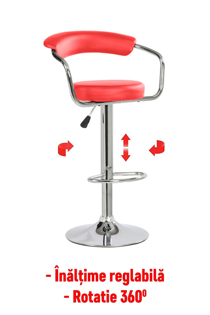 <p>Acest scaun este detaliul ce aduce relaxarea si buna dispozitie in casa ta atunci cand vrei sa petreci timp alaturi de familie si prieteni dragi. Datorita functionalitatii sale, scaunul poate fi utilizat atat in propria locuinta pentru un plus de stil, cat si in baruri sau restaurante.<br /><br /><strong>Este prevazut cu:</strong><br />Mecanism de rotire<br />Baza cromata<br />Spatar tapitat ce ofera o pozitie confortabila<br /><br /><strong>&Icirc;ntreţinere:</strong><br />Este recomandata utilizarea solutiilor speciale de curatare pentru piele ecologica ce nu contin solventi sau detergenti duri, evitand astfel riscul deteriorarii materialului. A se evita expunerea indelungata la razele solare.</p> <p><strong>Material mecanism ajustabil</strong><br />Inox</p> <div class="product-viewdescription"> <p><strong>Greutate maxima suportata: 100 kg.</strong></p> </div>