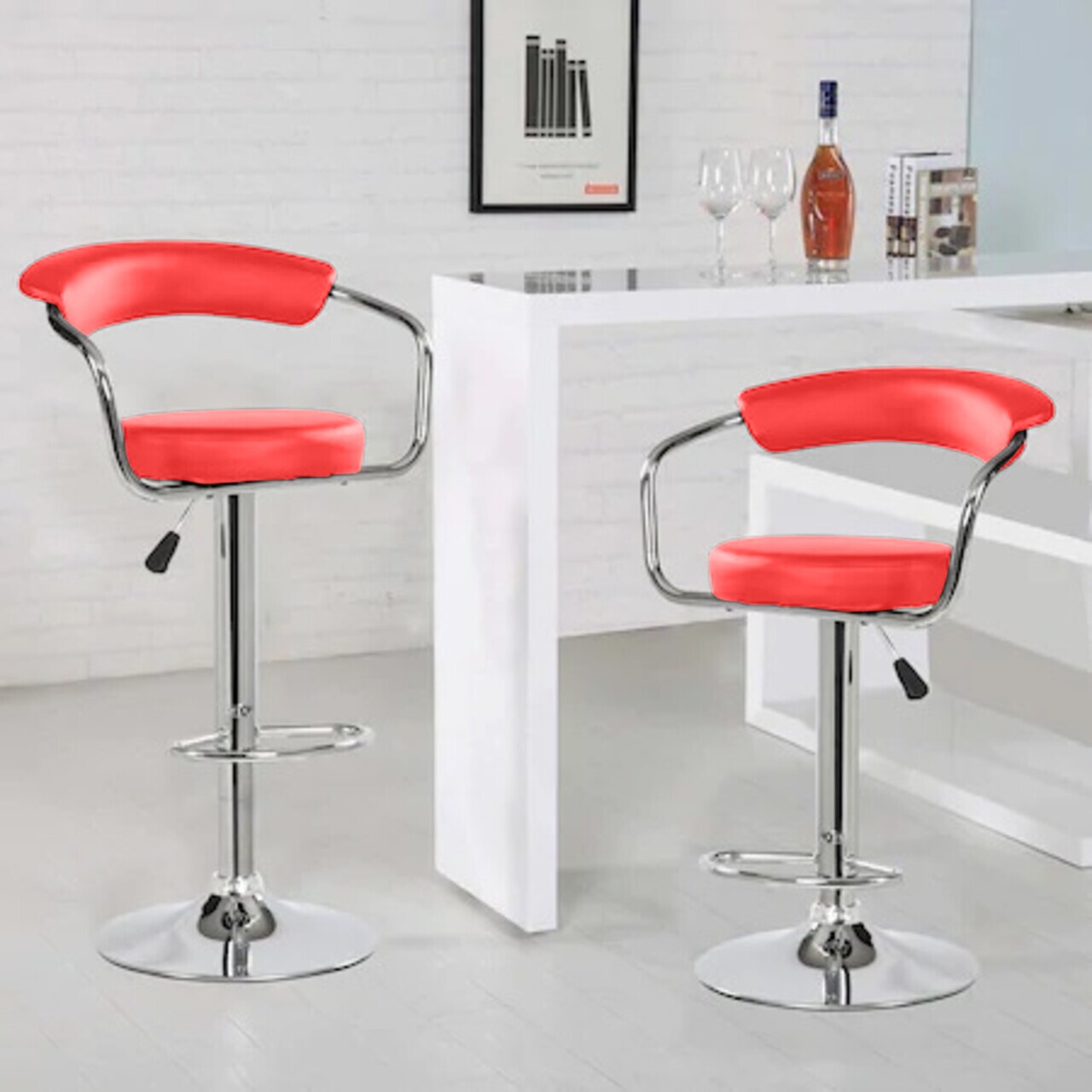 Set 2 scaune bar, Bedora Round, piele ecologica, rosu