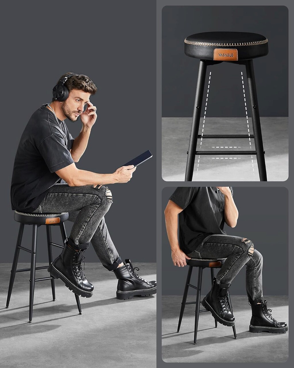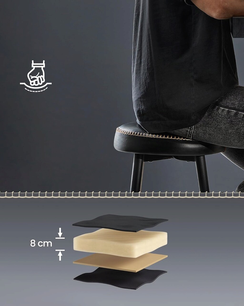 <p>Imbunatatiti-va spatiul de locuit cu scaunele Vasagle. Descoperiti amestecul seducator de piele sintetica, cusaturi rafinate si picioare conice elegante ale acestor scaune de bar din colectia Ekho.<br />Aceste scaune de bar au suporturi pentru picioare pe doua niveluri, se potrivesc persoanelor de diferite inaltimi, oferind un amestec de neegalat de confort si versatilitate. Ofera o experienta de sedere confortabila care dureaza, rezistand testului timpului.<br />Invelisul din piele sintetica este rezistent la apa. Picioarele din otel mat rezista la zgarieturi, pastrandu-si alura sofisticata chiar si in cazul utilizarii zilnice.<br />Compozitie material: otel, piele ecologica din poliuretan, spuma de inalta densitate.<br />Greutate maxima suportata: 120 kg.<br />Include instructiuni si kit de asamblare.</p>