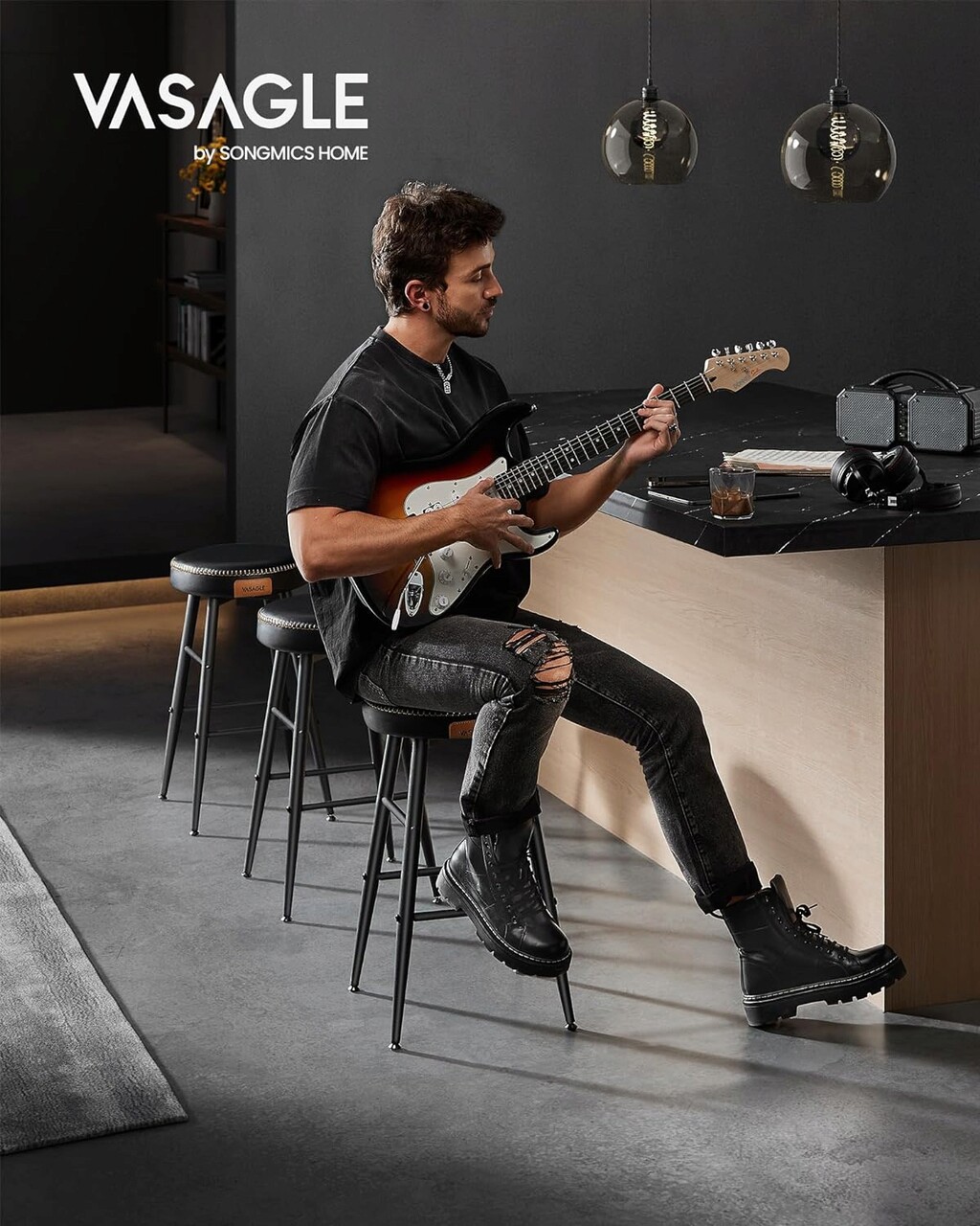 Set 2 scaune de bar Ekho, Vasagle, 49.5 x 49.5 x 63 cm, otel/piele ecologica, maro
