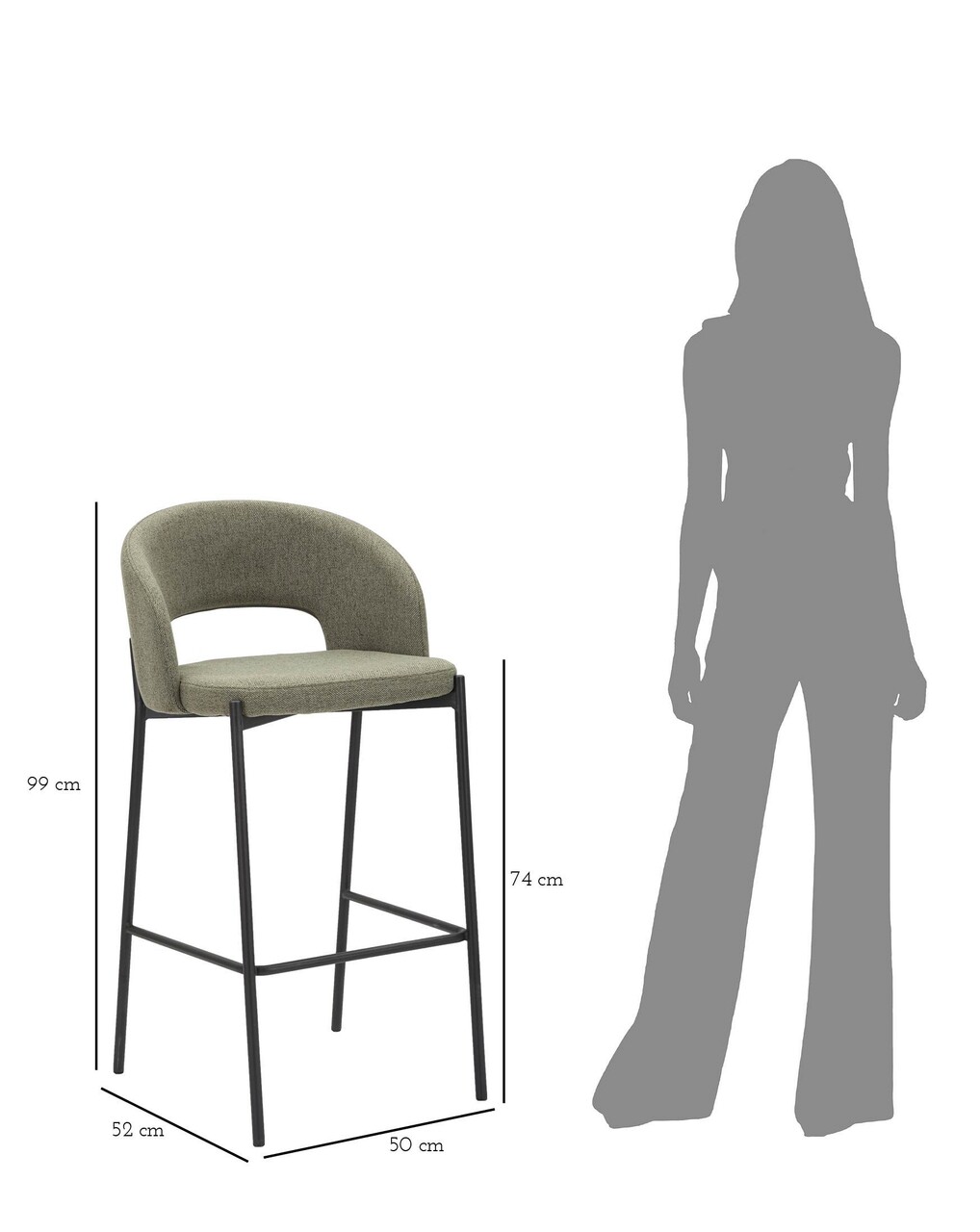 Set 2 scaune de bar, Helsinki, Mauro Ferretti, 50 x 52 x 99 cm, placaj/metal/textil, verde/negru