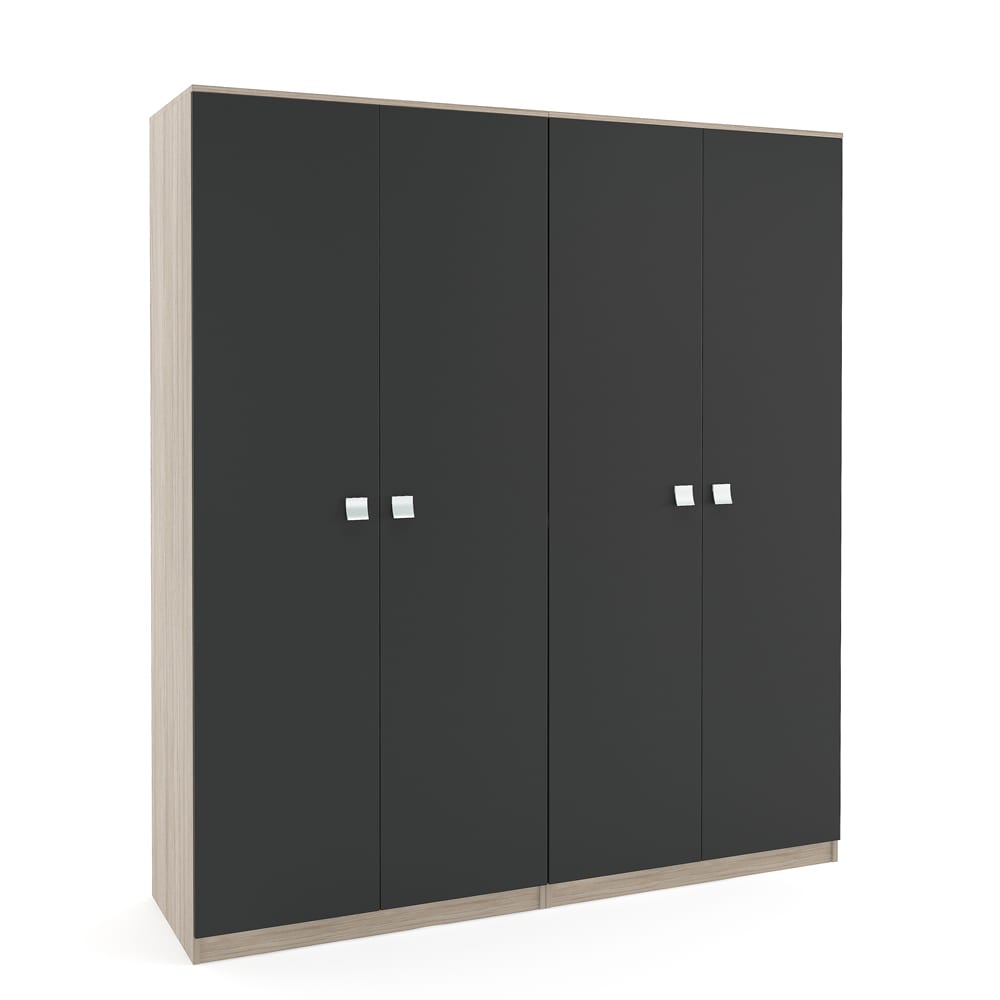 Dressing haine cu 4 usi, mixt, compus din doua dulapuri independente care se pot monta si separat.Dulap LINEA 2U politeDulap LINEA 2U bara umerase,politeCompartimentarea este completa, ofera spatii de depozitate pentru principale tipuri de depozitare:depozitare polite depozitare umeraseAcest ansamblu de dulapuri formeaza un dressing foarte util, cu avantaje considerabile din gestionarea hainelor.Lungime – 180cm ( 90cm + 90cm)Adancime – 52cmInaltime – 200cm Mobilier kit – se livreaza demontat, ambalat in cutii de cartonKitul contine schita montaj, feronerie, certificat garantie si conformitate MaterialePAL dublu melaminat 16mm – Oak – carcasaPAL dublu melaminat 16mm – Oak, Antracit – fronturiCant ABS 0,4mmFeronerie Italia Garantie producator 24 luni Livrare Gratuita in toata tara*Accesoriile din imagine nu sunt incluse in pret….