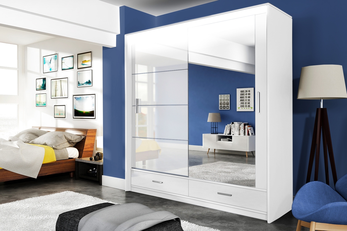 Față: placă laminată / oglindă Corp: placă laminată Dotare: ghidaje din aluminiu, cărucioare inferioare pe rulmenți, sistem de glisare (ghiduri) și fitinguri SEVROLL, 2 bare, rafturi, 2 sertare, iluminare LED Dimensiuni: lungime 203 adâncime 61 inaltime 225 cm. Produsul se livreaza coletat,insotit de schita de montaj. Necesita asamblare,nu oferim montaj. Transport gratuit in orice localitate!