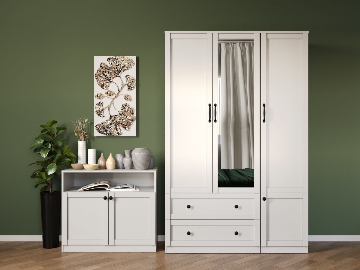Dulap Class Alb cu oglinda – C124/04 Dulap complet alb, clasic si elegant. Dulap Class Alb cu oglinda – C124/04 nu se rezuma doar la aspect, ci are si o utilitate desavarsita, avand compartimentare cu: 5 polite + bara de haine in partea de sus 1 polita + 2 sertare in partea de jos Finisajul Alb al palului creeaza un ambient elegant si atractiv in combinatie cu manerele negre mate. Are dimensiuni generoase, este spatios, iar inaltimea este conceputa cat sa incapa si in camere mai putin inalte sau in mansarde. Oglinda, pe langa utilitatea sa de baza, da senzatia de camera marita si spatioasa. SCHITA MONTAJ DULAP CLASS 83 SCHITA MONTAJ DULAP CLASS 41 Dimensiuni Dulap Class Alb cu oglinda – C124/04 Latime: 124 cm Adancime: 48 cm Inaltime: 192.5 cm Livrare Gratuita prin flota proprie Preturi de producator Toate corpurile au o garantie de 2 ani Video de prezentare familie Videoclipul ilustreaza un dulap si o comoda din gama Class, dar intreaga colectie ofera dulapuri in diferite dimensiuni, compartimentari variate, cu sau fara oglinda si optiunea de comode atat cu usi, cat si cu sertare. Scopul acestui video este de a detalia aspectul materialelor, accesoriilor cat si a familiei din care face parte. Dulap Class Alb cu oglinda Dulap Class Alb cu oglinda – C124/04 face parte din familia de mobila pentru dormitor Class ce are un aspect elegant si clasic, combinand palul alb cu manerele negre mate. Dulapurile au dimensiuni diverse si sunt proiectate pe 3 latimi , variante mai inguste pentru camere mici si medii si variante extinse pentru camere mai mari. Restul corpurilor de mobilier, comoda, noptierele si patul ofera la randul lor spatii de depozitare in completarea dulapului prin sertare . De asemenea puteti alege seturi cu pat ce au spatarul tapitat sau simplu cu dimensiunile de 140, 160 si 180×200 cm . Aveti posibilitatea de a adauga doua sau patru lazi de depozitare. Acestea sunt construite din PAL melaminat 16 mm cu finisaj Alb ce creeaza un ambient rafinat si un aspect placut. Cantul aplicat este unul de 0,6 ce le permite muchiilor sa fie placute la atingere fiind finisate si atent retusate. Pretul afisat nu include alte accesorii sau obiecte de decor (tablouri, elemente de iluminat, asternuturi, covor etc.) Produsul se livreaza demontat si este insotit de accesorii si instructiuni de asamblare. Dimensiunile sunt exprimate in cm si pot oscila intre ± 10 mm.
