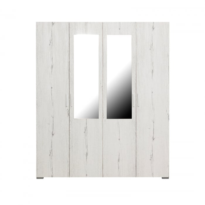 Dulap CORINNE, oglinzi, 4 usi, 4 rafturi, bara de haine, alb Elvetia, 160x50x188 cm