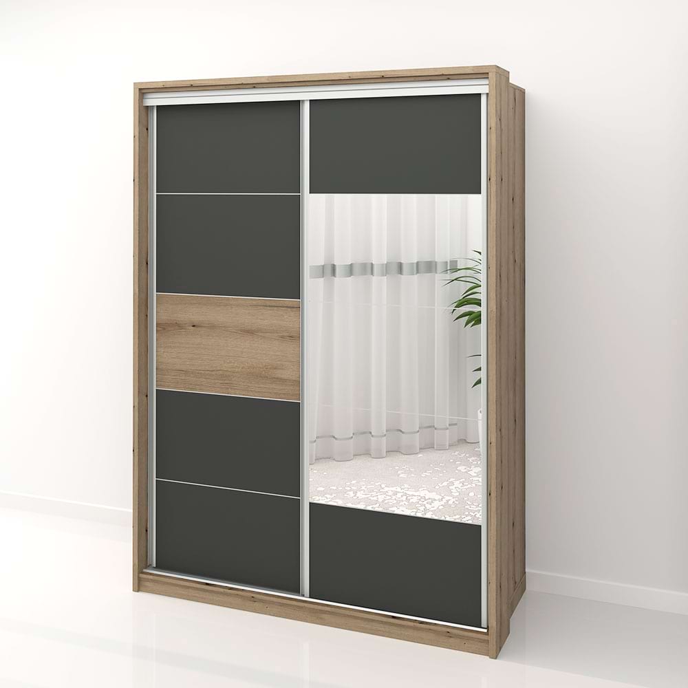 Dulap dormitor PRIMAVERA 155, H205, cu oglinda k3, Stejar, Antracit
