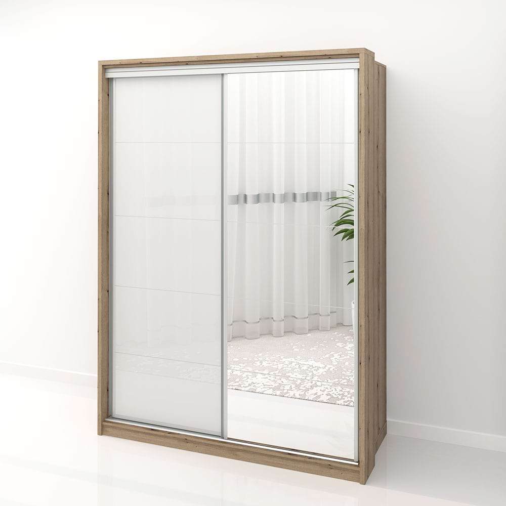 Dulap dormitor PRIMAVERA 155, H205, cu oglinda k5, Stejar, Alb Lucios