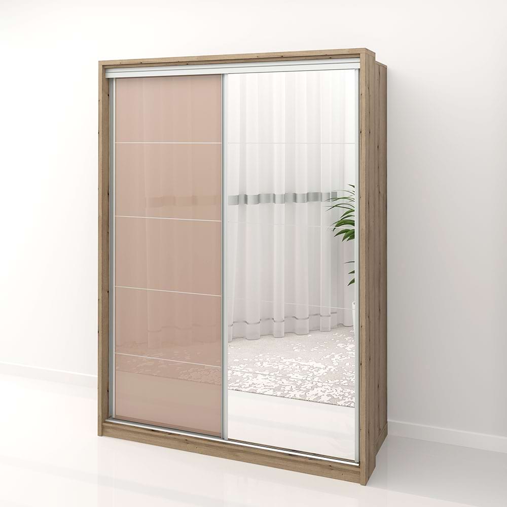 Dulap dormitor PRIMAVERA 155, H205, cu oglinda k5, Stejar, Cappuccino Lucios