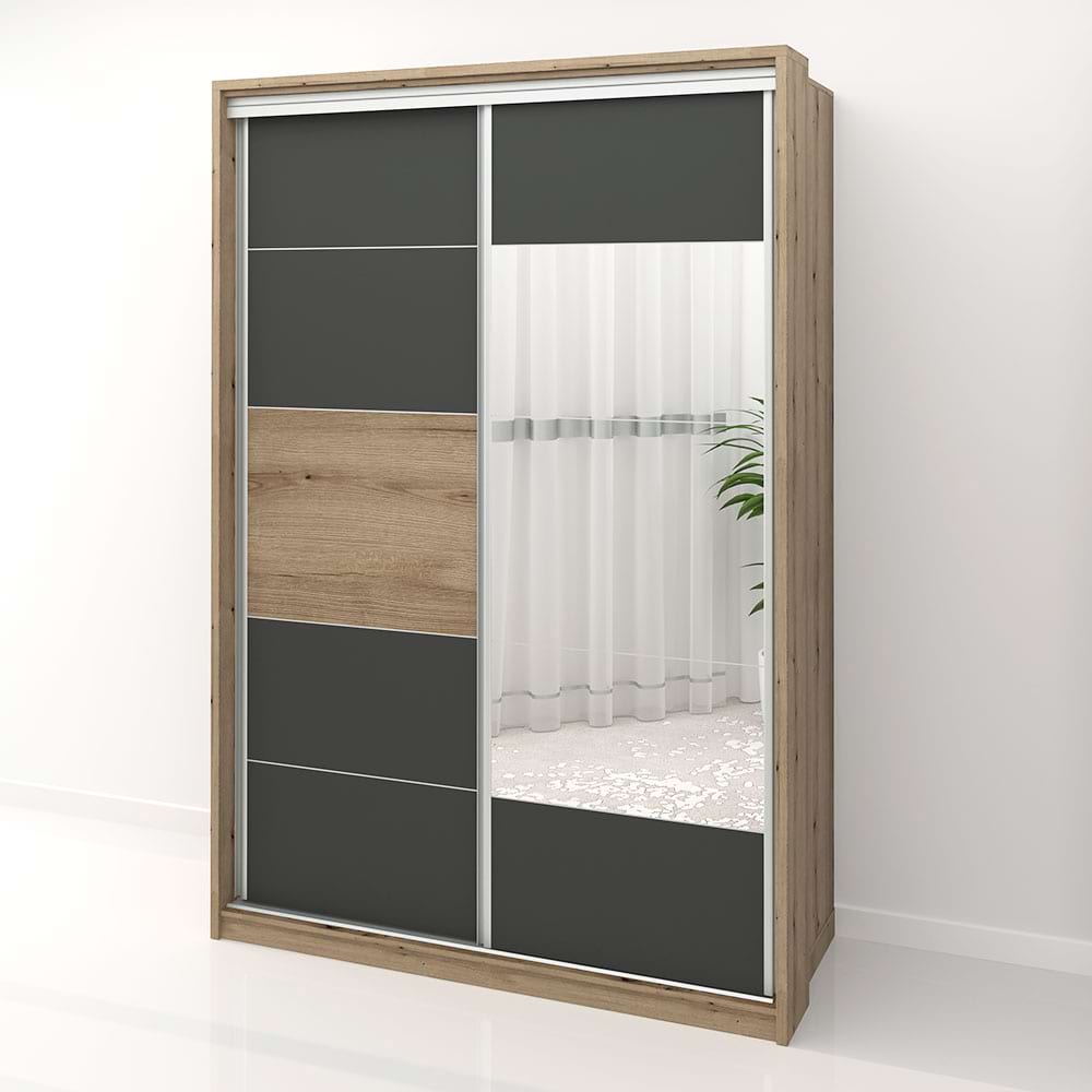Dulap dormitor PRIMAVERA 155, H225, cu oglinda k3, Stejar, Antracit