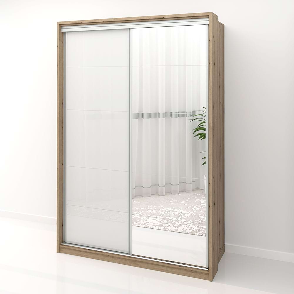 Dulap dormitor PRIMAVERA 155, H225, cu oglinda k5, Stejar, Alb Lucios