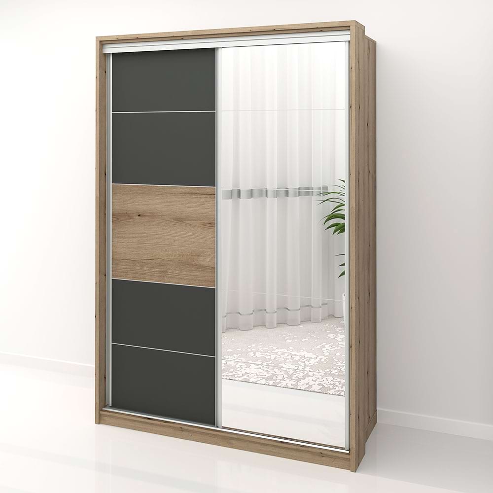 Dulap dormitor PRIMAVERA 155, H225, cu oglinda k5, Stejar, Antracit
