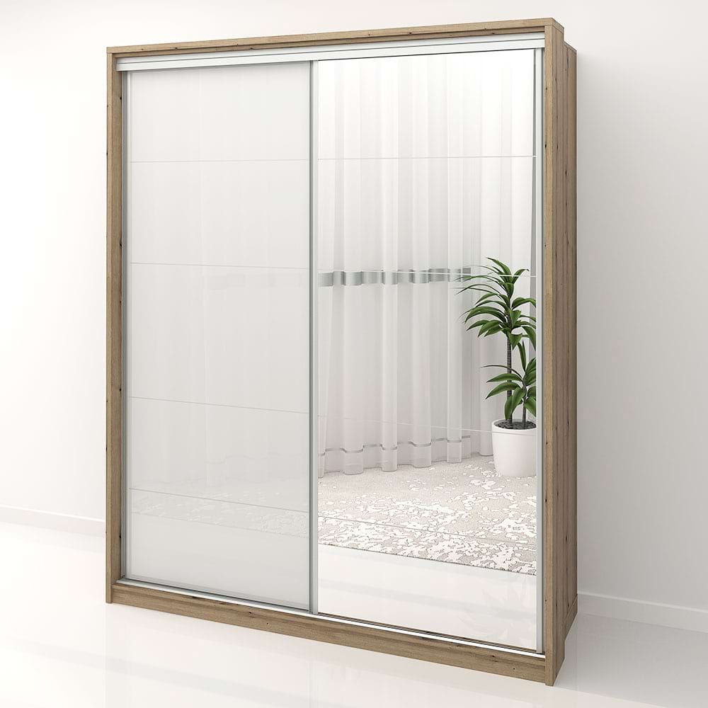 Dulap dormitor PRIMAVERA 185, H225, cu oglinda k5, Stejar, Alb Gloss