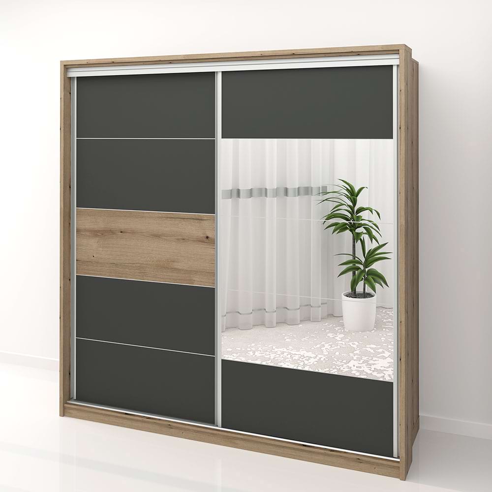 Dulap dormitor PRIMAVERA 205, H205, cu oglinda k3, Stejar, Antracit