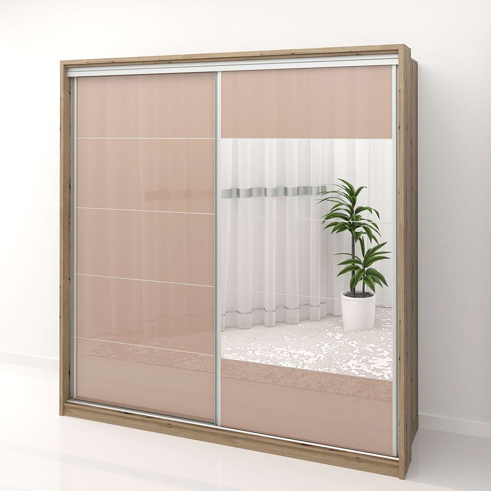 Dulap dormitor PRIMAVERA 205, H205, cu oglinda k3, Stejar, Cappuccino Lucios