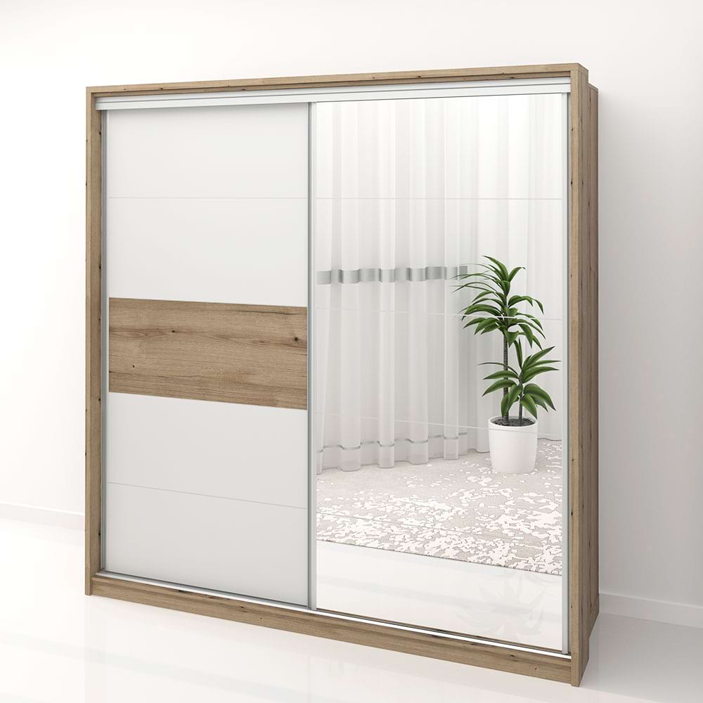 Dulap dormitor PRIMAVERA 205, H205, cu oglinda k5, Stejar, Alb