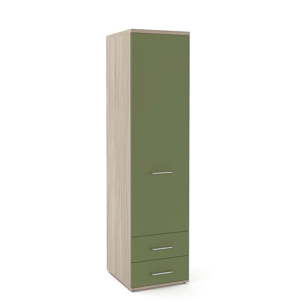 Dulap haine ingust 45cm, inaltime 180cm, cu 1 usa si 2 sertare, compartimentat cu polite, carcasa Oak, fronturi PestoLungime: 45 cm Latime: 50 cmInaltime: 180 cmDulapul PRIMAVERA – 20 ani de experienta! Facute sa reziste!compartimentarea este proiectata cu incarcare echilibrata a spatiilorpicioare metalice cu reglaj din interior pentru o asamblare corecta a dulapului indiferent de planeitatea pardoseliiusile dulapului sunt prevazute cu manere sau butoni metalici usile sunt reversibile, se pot monta cu deschiderea pe partea stanga sau dreapta (din pozitionarea manerului)glisiere cu amortizare Hafele Mobilier kit – se livreaza demontat, ambalat in cutii de cartonKitul contine schita montaj, feronerie, certificat garantie si conformitate MaterialePAL dublu melaminat 16mm, 25mm – Oak – carcasaPAL dublu melaminat 16mm – Pesto – frontCant ABS 0,4mmCant ABS 1mm Garantie producator 24 luni Livrare Gratuita in toata tara*Accesoriile din imagine nu sunt incluse in pret….