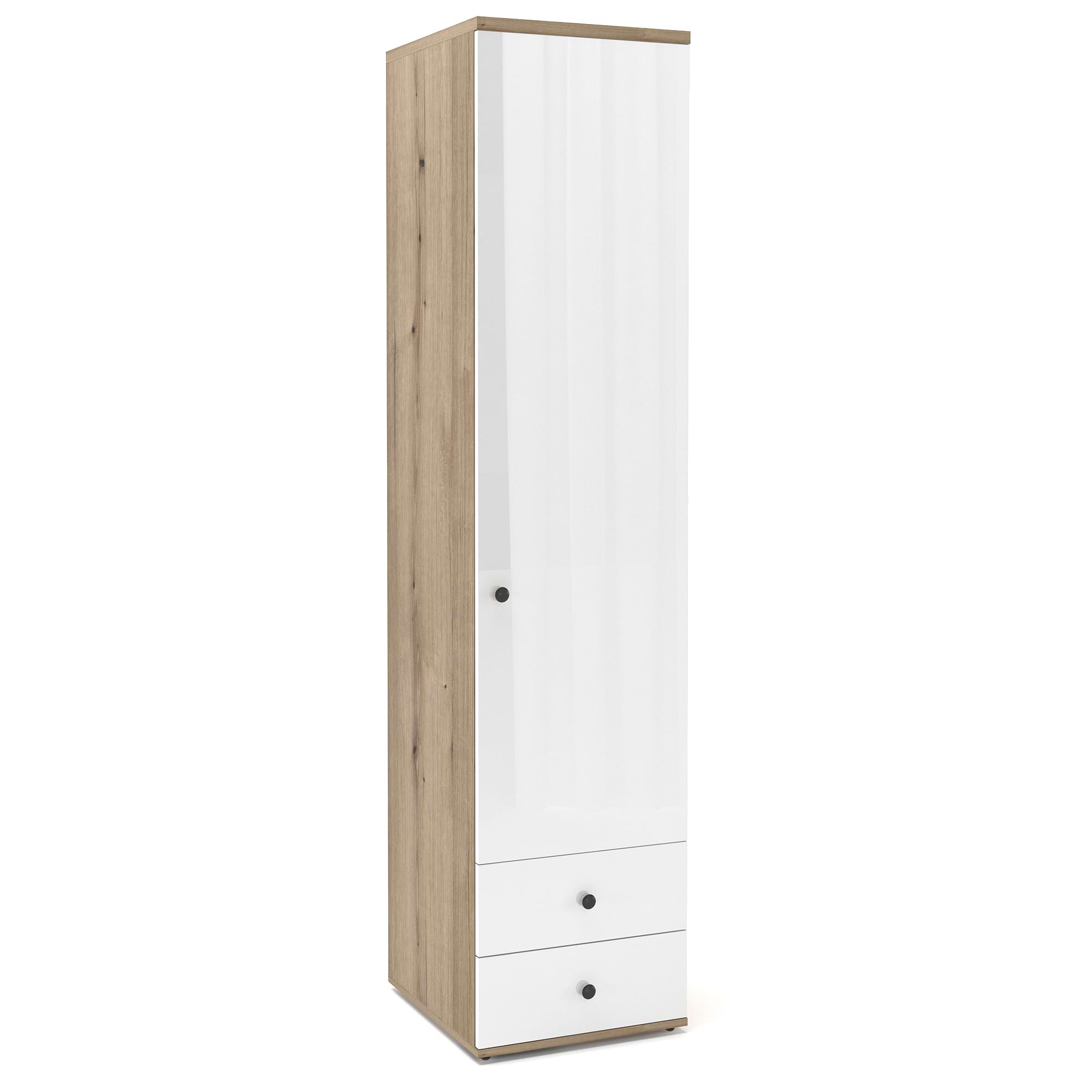 Dulap haine ingust 45cm, inaltime 200cm, cu 1 usa si 2 sertare, compartimentat cu polite, carcasa Stejar, fronturi MDF Alb Gloss.Lungime: 45 cm Latime: 50 cmInaltime: 200 cmDulapul PRIMAVERA – 20 ani de experienta! Facute sa reziste!compartimentarea este proiectata cu incarcare echilibrata a spatiilorpicioare metalice cu reglaj din interior pentru o asamblare corecta a dulapului indiferent de planeitatea pardoseliiusile dulapului sunt prevazute cu manere sau butoni metalici usile sunt reversibile, se pot monta cu deschiderea pe partea stanga sau dreapta (din pozitionarea manerului)glisiere cu amortizare Hafele Mobilier kit – se livreaza demontat, ambalat in cutii de cartonKitul contine schita montaj, feronerie, certificat garantie si conformitate MaterialePAL dublu melaminat 16mm, 25mm – Stejar – carcasaMDF 18mm – Alb Gloss – fronturiCant ABS 0,4mmCant ABS 1mm Garantie producator 24 luni Livrare Gratuita in toata tara*Accesoriile din imagine nu sunt incluse in pret….
