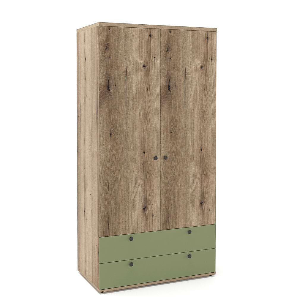 Dulap haine PRIMAVERA 90cm, inaltime 180cm, cu 2 usi si 2 sertare, compartimentat cu polite si bara umerase, carcasa Stejar, fronturi Stejar si Pesto.Lungime: 90 cm Latime: 50 cmInaltime: 180 cmDulapul PRIMAVERA – 20 ani de experienta! Facute sa reziste!compartimentarea este proiectata cu incarcare echilibrata a spatiilorpicioare metalice cu reglaj din interior pentru o asamblare corecta a dulapului indiferent de planeitatea pardoseliiusile dulapului sunt prevazuta cu manere sau butoni metalici sertarele au glisiere cu amortizare Hafele Mobilier kit – se livreaza demontat, ambalat in cutii de cartonKitul contine schita montaj, feronerie, certificat garantie si conformitate MaterialePAL dublu melaminat 16mm, 25mm – Stejar – carcasaPAL dublu melaminat 16mm – Stejar si Pesto – frontCant ABS 0,4mmCant ABS 1mm Garantie producator 24 luni Livrare Gratuita in toata tara*Accesoriile din imagine nu sunt incluse in pret….
