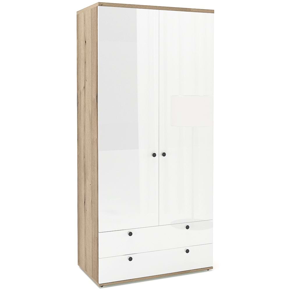 Dulap haine PRIMAVERA 90, H200, 2U2S, bara umerase, Stejar, Alb Gloss
