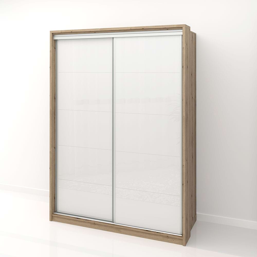 Dulap haine usi glisante PRIMAVERA 155, H205, Stejar, Alb Lucios
