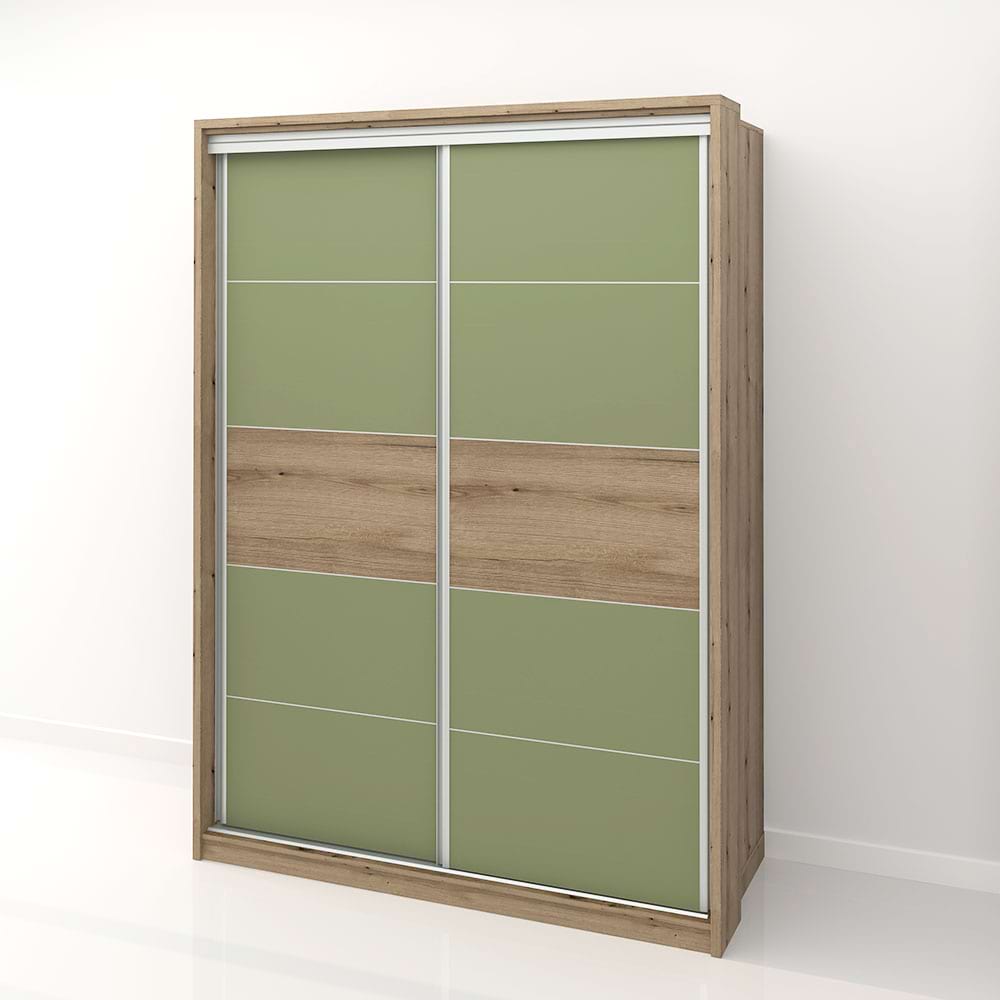 Colectia modulara PRIMAVERA – Exclusiv Tamos!Colectia de mobilier modular Primavera contine o gama completa de corpuri de mobila: paturi, dulapuri, comode, noptiere, etajere, vitrine, oglinzi.Dulap haine usi glisante PRIMAVERA 155, H205, Stejar, Pesto Dulap configurabilconfigurezi lungime dulap – 155cm, 185cm, 205cmconfigurezi inaltime dulap – 205cm, 225cmconfigurezi decor – oak, antracit, vizon, pesto, alb, alb lucios, cappuccino luciosconfigurezi complemente – adauga valoare cu optiunile disponibile:Kit 3/200cm (3 oglinzi sticla 3mm)Kit 5/200cm (5 oglinzi sticla 3mm)Kit 2 sertareDulap suprapoazabilDimensiuni oglinda dulap L155: 66x37cm Dimensiuni oglinda dulap L185:81x37cmDimensiuni oglinda dulap L205:91x37cm Dimensiuni 155 x 60 x 205 cm Mobilier kit Se livreaza demontat, ambalat in cutii de cartonKitul contine schita montaj, feronerie, certificat garantie si conformitate MaterialePAL dublu melaminat 16mm, 25mm Stejar, PestoSistem de glisanre modern compus din sine de glisare din aluminiu si sisteme de rulare reglabileManere de aluminiu cu perie de amortizare incastrata in profilOpritor usa cu reglajPicioare metalice cu reglaj din interiorul dulapului Bara pentru umerase metalicaCant ABS 0,4mmCant ABS 1mmComplemente:Oglinda de sticla 3mm finisata pe margine prin slefuire Banda dublu adeziv pentru lipire oglinda pe front usaGlisiere cu amortizare la Kit sertare interioare Garantie 24 luni Livrare GRATUITA in toata tara . Produsele se preiau de la masina.*Accesoriile din imagine nu sunt incluse in pret….