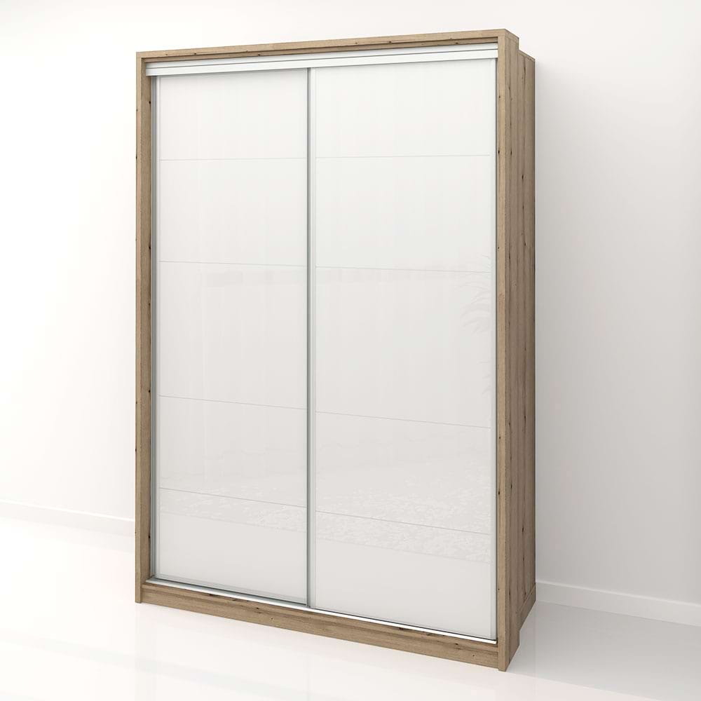Dulap haine usi glisante PRIMAVERA 155, H225, Stejar, Alb Lucios