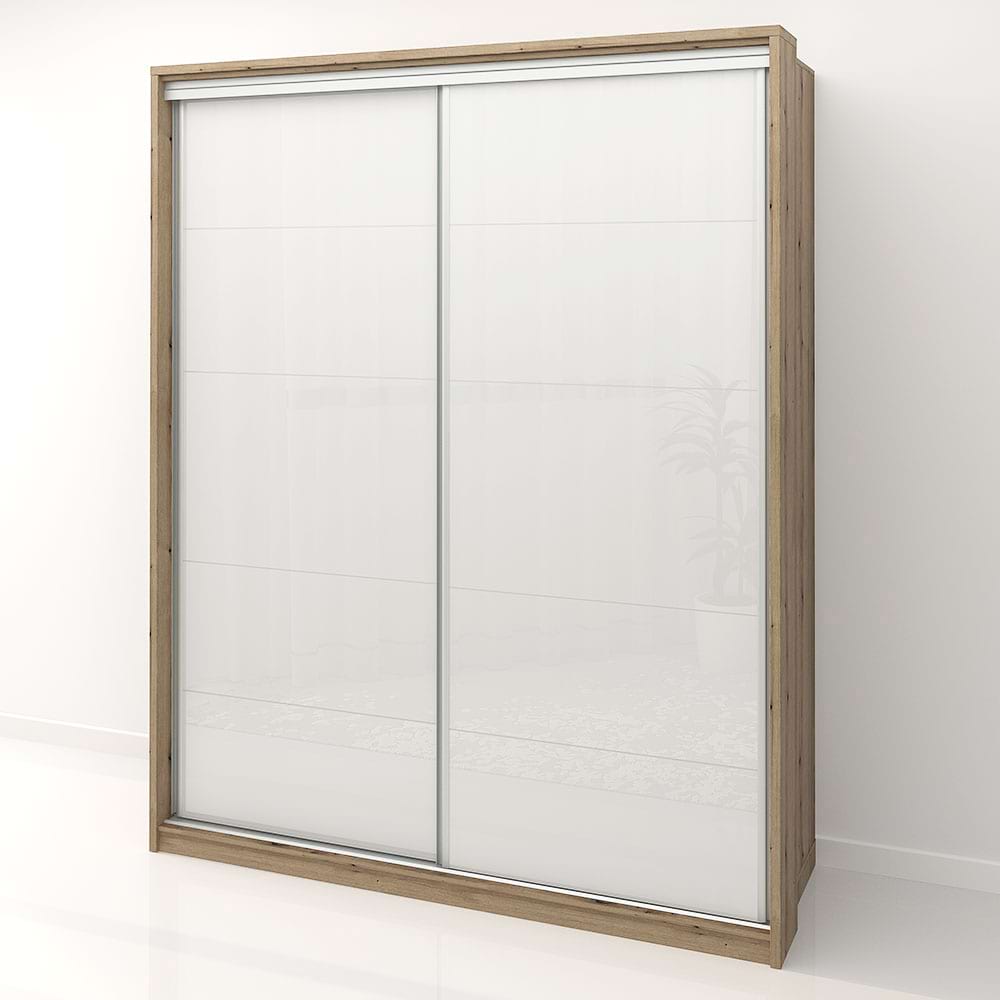 Dulap haine usi glisante PRIMAVERA 185, H205, Stejar, Alb Lucios