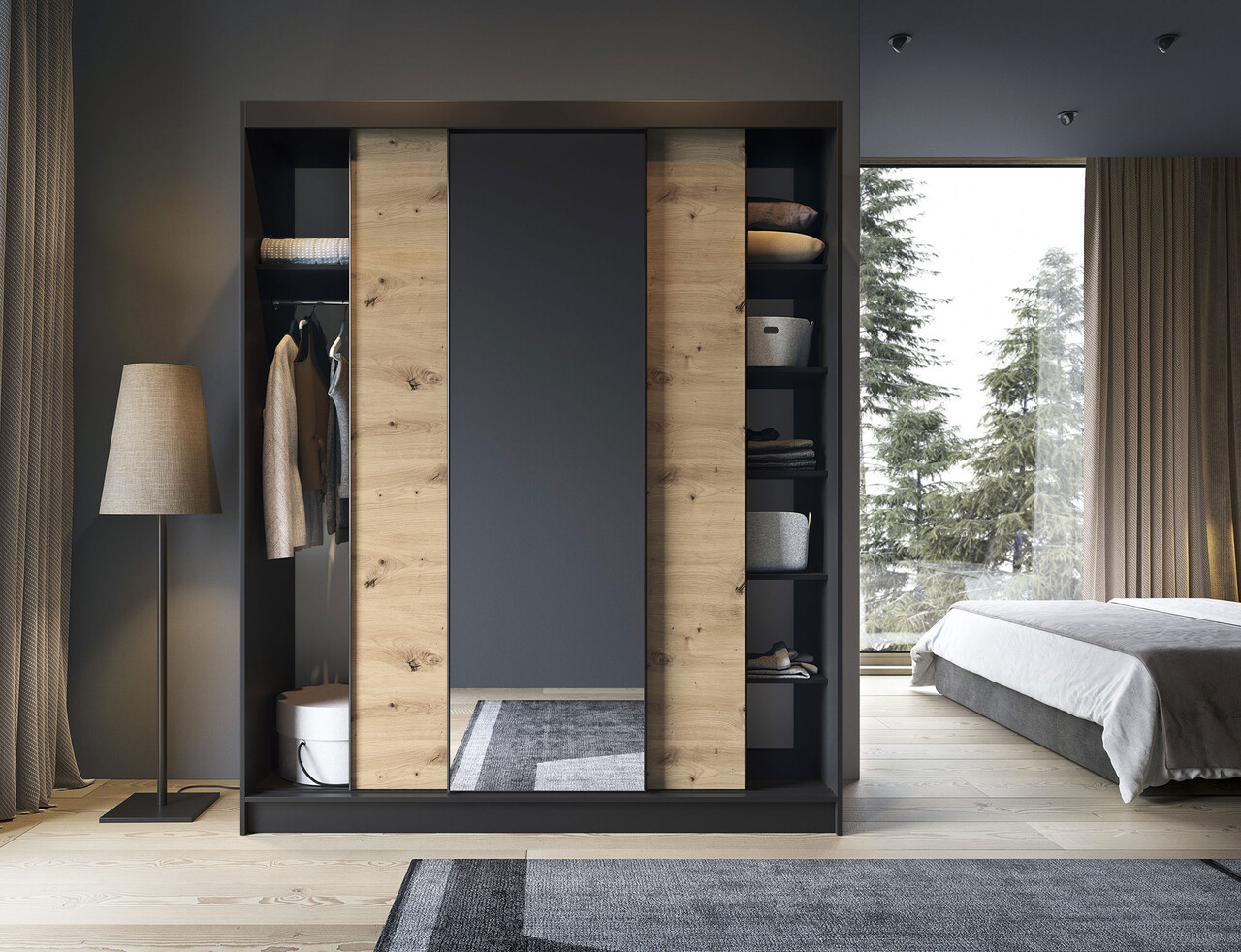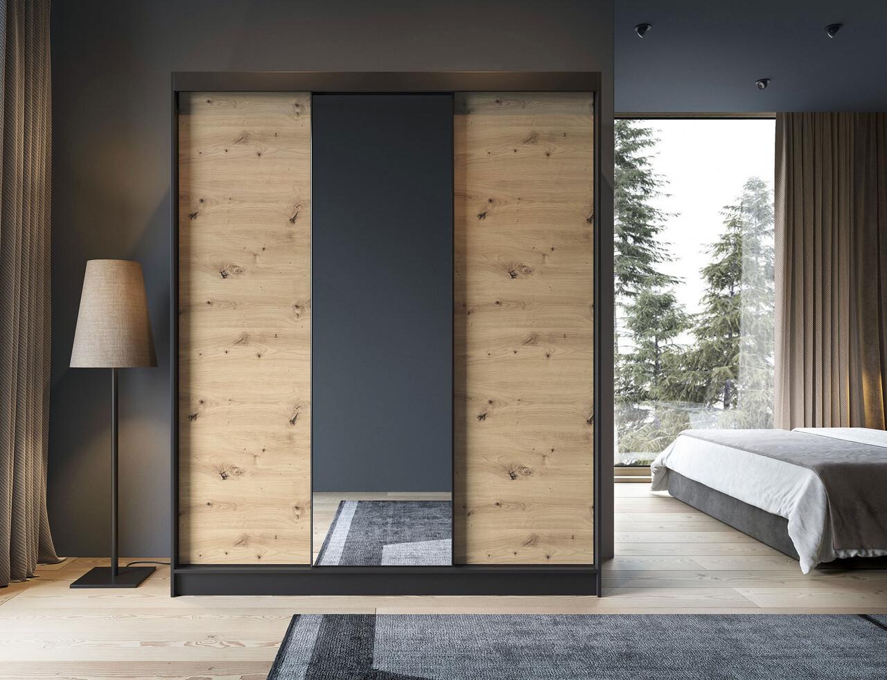 Dulap pentru haine cu oglinda ELTAP, Esville III, 180x60x220 cm, MDF/ABS, negru/stejar