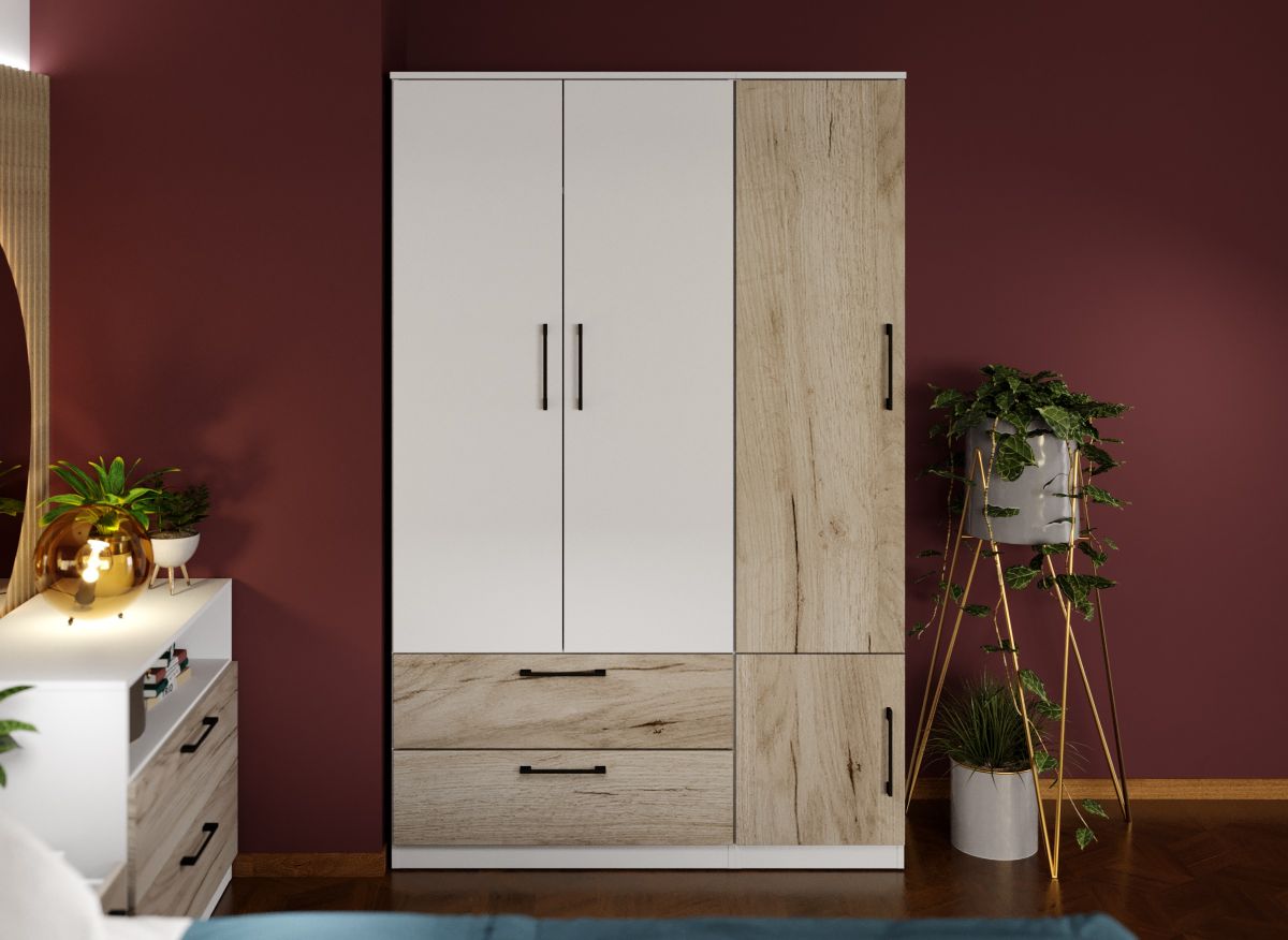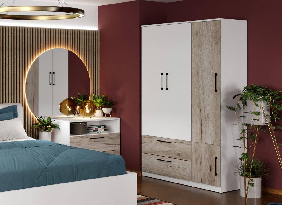 Dulap Relax Alb / Stejar k02 – C124/01 Dulap cu un design echilibrat si linistitor pentru orice camera de dormitor. Dulap Relax Alb / Stejar k02 – C124/01 nu se rezuma doar la aspect, ci are si o utilitate desavarsita, avand compartimentare cu: 5 polite + bara de haine in partea de sus 2 sertare + o polita in partea de jos ( nu sunt prezentate sertarele in randarea de compartimentare dulap, insa sertarele sunt incluse ) Finisajul palului Alb si Stejar k02 creeaza un ambient modern si atractiv in combinatie cu manerele negre si carcasa de dulap alba. Are dimensiuni generoase, este spatios, iar inaltimea este conceputa cat sa incapa si in camere mai putin inalte sau in mansarde. SCHITA MONTAJ DULAP 41 SCHITA MONTAJ DULAP 83 CU SERTARE Dimensiuni Dulap Relax Alb / Stejar k02 – C124/01 Latime: 124 cm Adancime: 48 cm Inaltime: 192.5 cm Livrare Gratuita prin flota proprie Preturi de producator Toate corpurile au o garantie de 2 ani Video de prezentare familie Videoul de prezentare poate contine mai multe corpuri de mobilier sau mai putine in comparatie cu produsul de pe aceasta pagina. Scopul acestui video este de a detalia aspectul materialelor, accesoriilor cat si a familiei din care face parte. Dulap Relax Alb / Stejar k02 – C124/01 Dulapul face parte din familia de mobila pentru dormitor Relax ce are un aspect modern combinand palul alb si stejar k02 cu manerele negre. Acesta are dimensiuni diverse si este proiectat pe 4 latimi . Variante mai inguste pentru camere mici si medii si variante extinse pentru camere mai mari. Pe langa dulapuri, comoda, noptierele si patul ofera la randul lor spatii de depozitare prin sertare . Deasemenea puteti alege seturi cu pat ce au spatarul tapitat sau simplu cu trei dimensiuni de 140, 160, 180×200. Aveti posibilitatea de a adauga doua sau patru lazi de depozitare. Acestea sunt construite din PAL melaminat cu finisaj Alb si Stejar k02 ce creeaza un ambient rafinat si un aspect placut. Cantul aplicat este unul de 0,6 ce le permite muchiilor sa fie placute la atingere fiind finisate si atent retusate. Pretul afisat nu include alte accesorii sau obiecte de decor (tablouri, elemente de iluminat, asternuturi, covor etc.) Produsul se livreaza demontat si este insotit de accesorii si instructiuni de asamblare. Dimensiunile sunt exprimate in cm si pot oscila intre ± 10 mm.