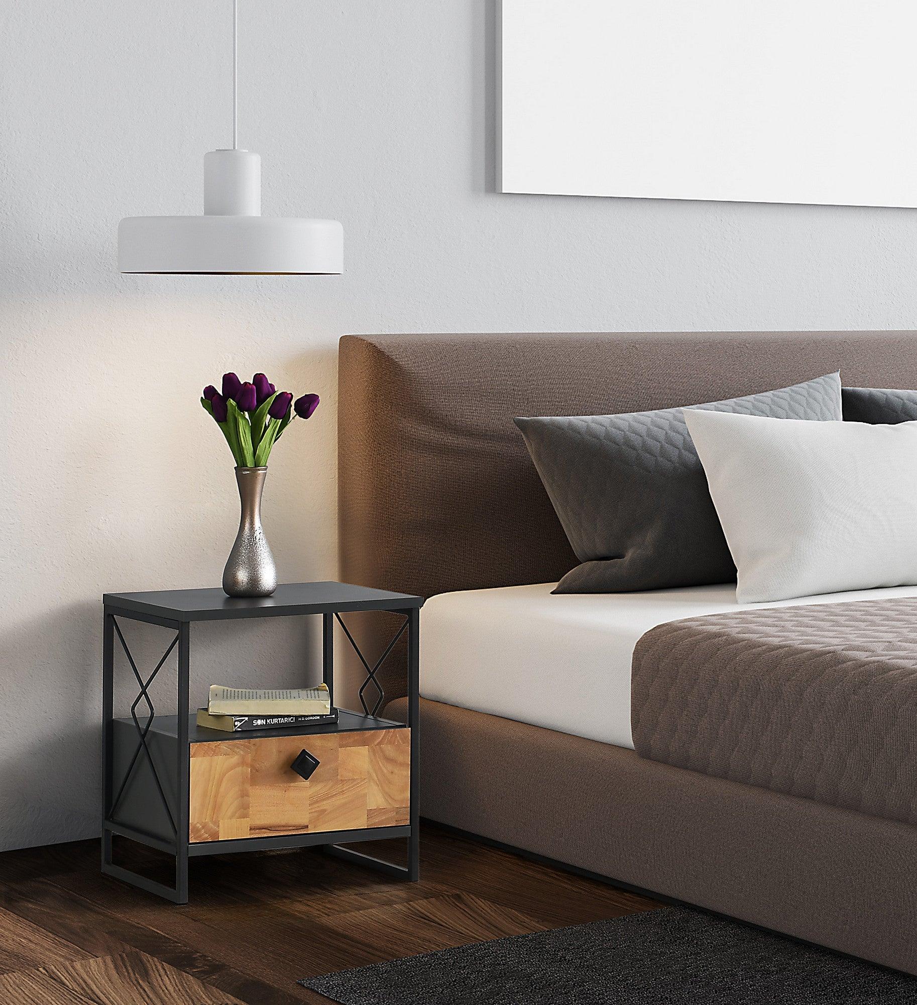 Completează aspectul confortabil al dormitorului tău cu această noptieră elegantă și practică. Cu un design simplu și finisaje de calitate, această noptieră este alegerea perfectă pentru a-ți ține obiectele personale la îndemână în timpul nopții.Compactă și ușor de integrat în decorul existent, această noptieră adaugă un plus de funcționalitate și eleganță fiecărei camere de dormit. Alege confortul și stilul pentru dormitorul tău cu această noptieră de încredere! 100% MDF / PAL Grosime: 18 mm Latime: 45 cm Inaltime: 50 cm Adancime: 41 cm Înălțimea raftului superior: 20,5 cm Inaltime picior: 8 cm