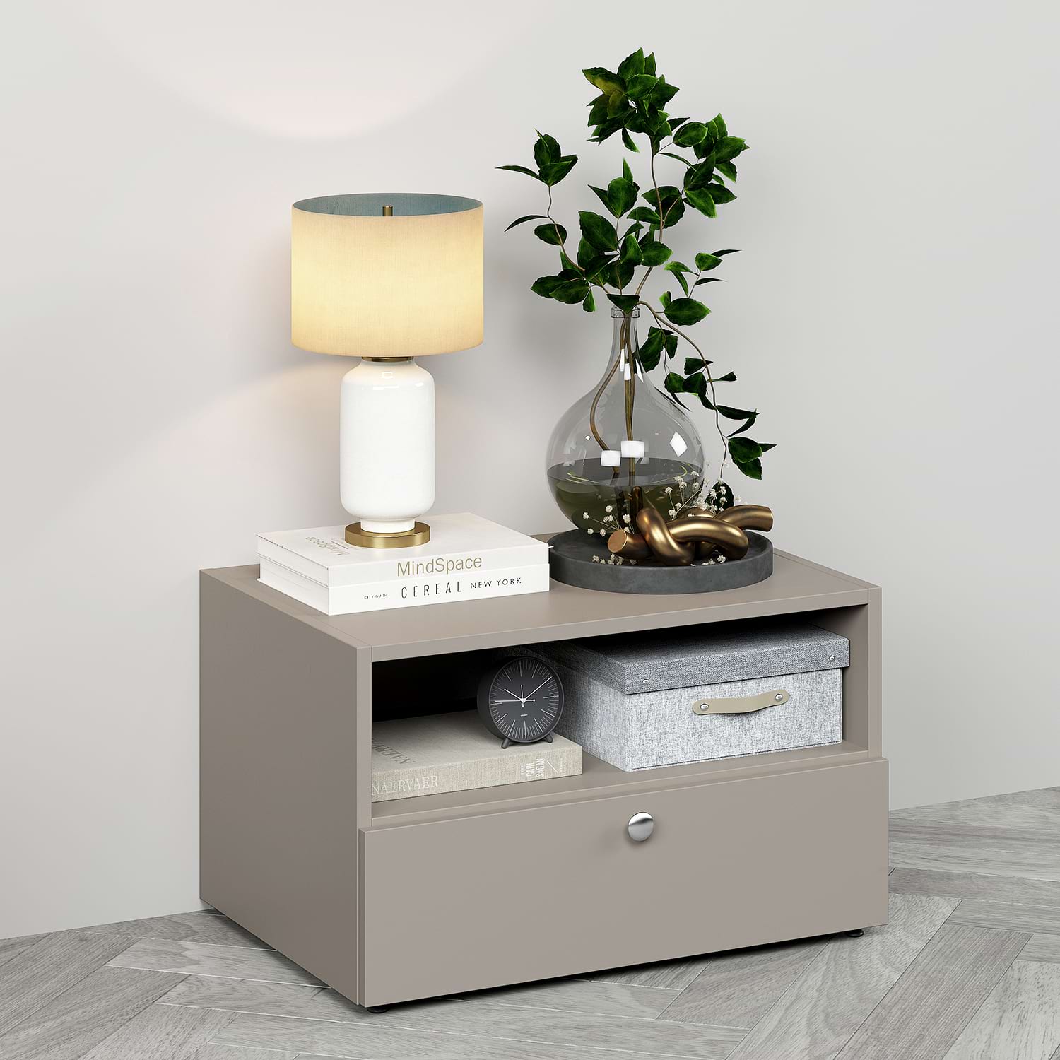 Noptiera Arona – Simplitate si functionalitate la un pret accesibil!Fabricata in Romania!Completeaza-ti dormitorul cu o piesa de mobilier practica si moderna! Noptiera Arona ofera tot ce ai nevoie pentru confortul de zi cu zi, la un pret pentru orice buzunar. Caracteristici + Configurare flexibilaConstrucție solida: Carcasa solida din PAL de 16 mm – Durabila si stabila, in nuanțe neutre usor de integrat.Asamblare un sistem rastex/cama si cepi de lemnPFL inserat in nut pentru un plus de rezistențaDesign simplu si modern: Finisaj nuc cald, potrivit pentru orice stil de dormitor.Sertare spatioase cu glisare soft-close – Inchidere silențioasa si confort zilnic.Glisiere cu bile Hafele Matrix BB S30, cu extragere totala si amortizare integrata (lungime 35cm)Picioruse metalice cu reglaj de inalțime (15-20mm) – Stabilitate pe orice suprafața, design elegant, culoare la alegere.Butoni metalici – Detaliu subtil, nu plastic!Configurație flexibila:Culoare fronturi, butoni si picioare la alegereOpțiune suspendare pe pereteOpțional: iluminare LED ambientala pentru un efect wow!Noptiera ARONA gri piatra – rafinament si echilibru modern. Perfecta pentru amenajari contemporane cu accente urbane si industriale. Dimensiunilungime: 60cmlatime: 42cminaltime (fara picioare): 35cminaltime (cu picioruse reglabile): 37cm MaterialeCarcasa – PAL melaminat Gri Piatra 16mmFronturi – PAL melaminat Gri Piatra 16mmPicioruse metalice reglabile 20mmDe ce sa alegi aceasta noptiera?Design personalizabil: Se potriveste perfect stilului tau – alege nuanțele care completeaza decorul dormitorului.Materiale rezistente si intretinere usoaraFuncționalitate maxima: Sertarele spațioase cu soft-close, picioarele reglabile si opțiunea de suspendare o fac potrivita pentru orice nevoie.Montaj usor si livrare rapida. Garantie producator 24 luni Livrare GRATUITA in toata Romania…