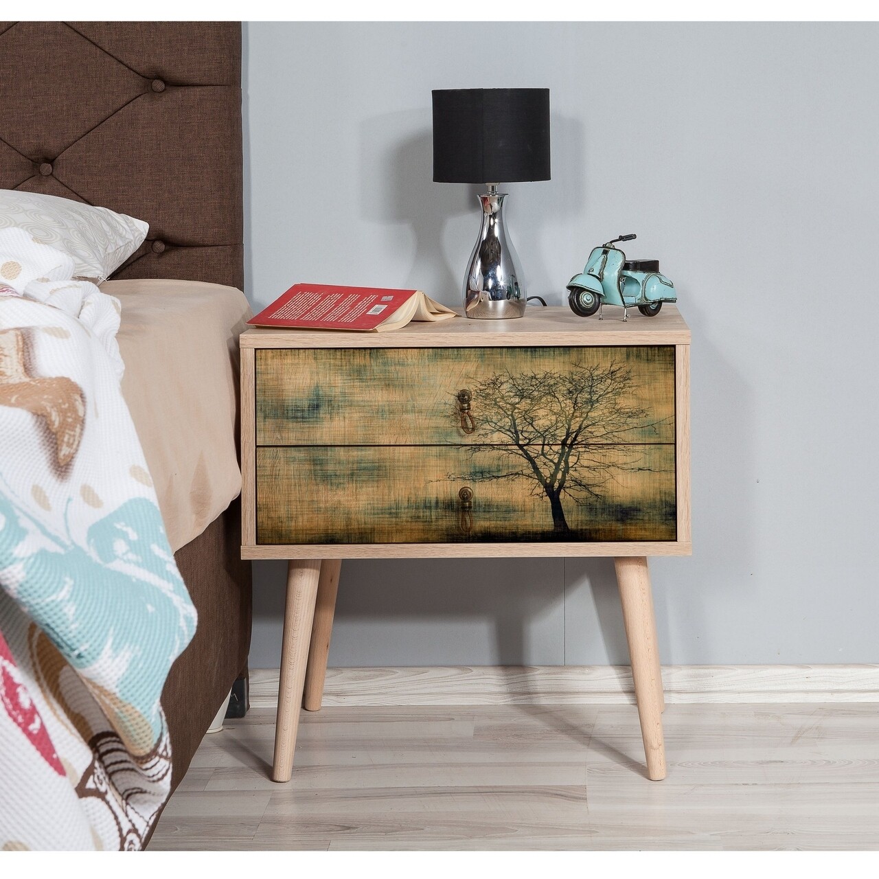 Noptiera cu 2 sertare Two 729, Vella, 60x40x61 cm, multicolor